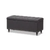 The Designs4Comfort Magnolia Storage Ottoman with Trays will complete the look of any home. Offering two removable reversible trays. Take a load off and prop up your feet with the cushion side up or leave them tray side up for your favorite cup of coffee or tea. The inside storage provides plenty of space for hiding away tra pillows and blankets or anything else you may need a spot for. FeaturesUpholstered in FabricReversible TraysInside Concealed StorageMultiple UsesSpecificationsFinish: Black Faux LeatherDimension: 32 L x 16 W x 17 H in.Weight: 26 lbs
