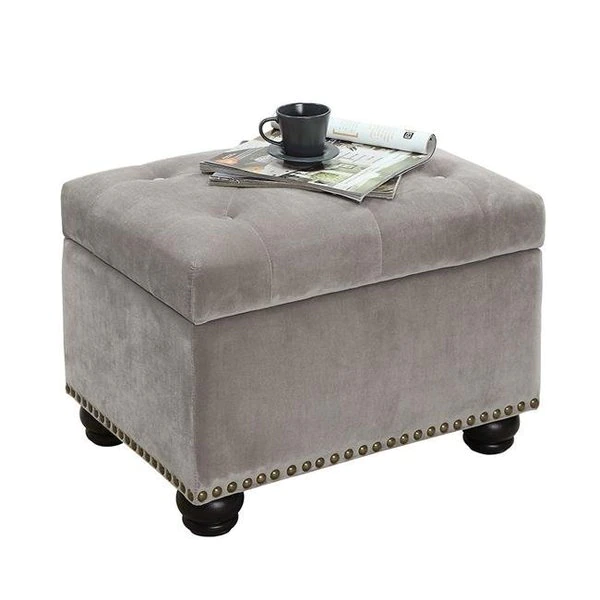 The Designs4Comfort 5th Avenue Storage Ottoman by Convenience Concepts will bring style and functionality to any room in your home. This elegant ottoman showcases a gorgeous button tufted hinged lid paired perfectly with the accented nailhead trim. Open the hinged lid to reveal the perfect amount of storage to keep your space clutter free. The solid wood turned feet ensure that this piece will be as reliable as it is beautiful.FeaturesButton TuftingHinged LidNailhead TrimSolid Wood Turned FeetColor – VELVET; LIGHT TAUPEDimensions – 24 L x 18 W x 18 H in.