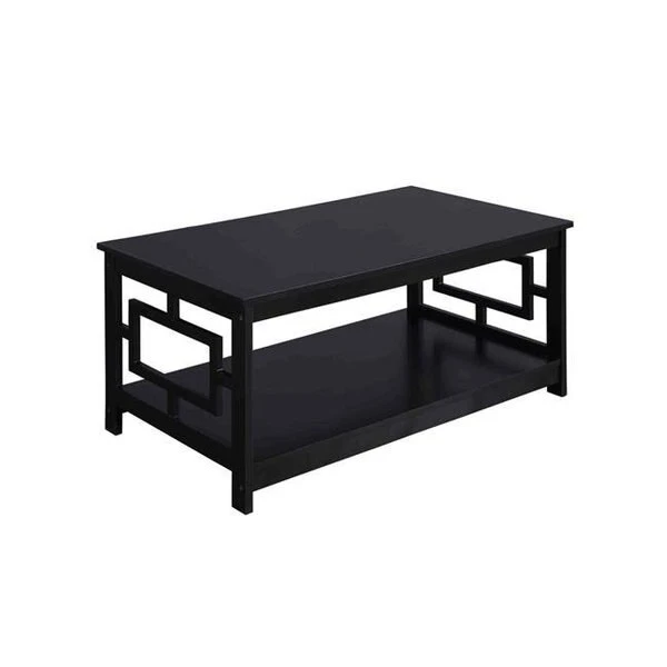 Update your home with this beautifully crafted Town Square Coffee Table with Shelf by Convenience Concepts. This simple yet eye-catching coffee table showcases a symmetrical Asian-inspired design with its unique square side panels. The large spacious tabletop and the open-concept bottom shelf provide the perfect space to display décor and store entertainment essentials. Crafted from MDF and finished with non-lead-based paint, this transitional table is built to last. Shop a wide variety of finishes and styles available from the Town Square Collection by Convenience Concepts, each sold separately.FeaturesPart; of the Town Square Collection;;;Available; in Multiple Finishes2; Tiers of Spacious Shelving;;;; Crafted from MDF and non-lead based paintSpecificationsColor: BlackCollection: Town SquareDimension: 39.25 x 21.75 x 18 in.Weight: 42 lbs