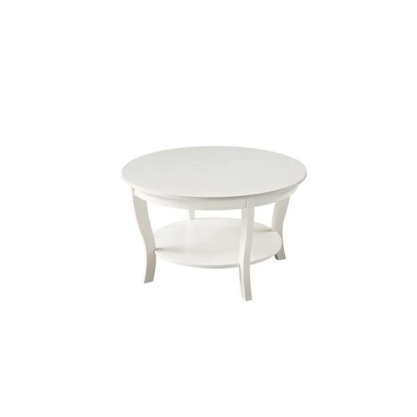 Instantly refresh your living room decor with the American Heritage Round Coffee Table by Convenience Concepts. Its round silhouette features slightly curved legs along with a bottom shelf. The modern contemporary style will add a simple yet chic touch to your ensemble. With two circular tiers. you'll have enough room to store or display your favorite center piece or entertainment essentials. This coffee table is crafted from MDF and solid rubberwood and it is finished with a rich veneer. making this piece durable and easy maintenance. Its assembly is as simple as its design. It requires only 4 steps which allows you to add to your living space right after delivery.This circle table will become a staple in your home right away. Pair with additional items from the American Heritage Collection by Convenience Concepts. FeaturesBoasts a modern contemporary styleMade from MDF/Solid rubberwood/VeneerSimple and fast assembly requiring only 4 stepsSpecificationsColor: WhiteCollection: American HeritageShape: RoundDimension: 30 x 30 x 18 in.Weight: 29 lbs