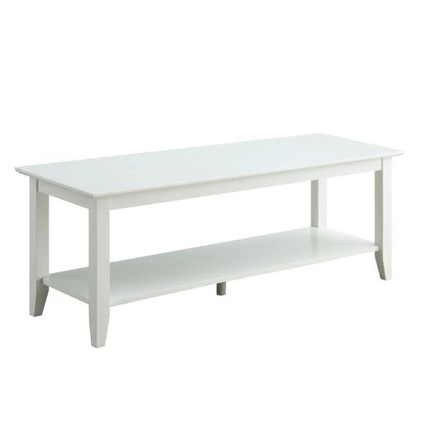 Whether you're in a waiting area. office. or at home enjoying a cup of coffee or two. the smooth generous top of the American Heritage Coffee Table will surely make your coffee break more enjoyable. Featuring an additional spacious bottom shelf where you can easily reach out for reading materials such as magazines or newspapers. With it's simple Classic American Styling it will earn praise in an already well furnished room. Quick and Easy Set UpClassic American StylingBottom ShelfFits Easily with Any DecorWill Provide Years of Enjoyment SpecificationsColor: WhiteDimension: 17" H x 48" W x 17" DWeight: 29 lbs