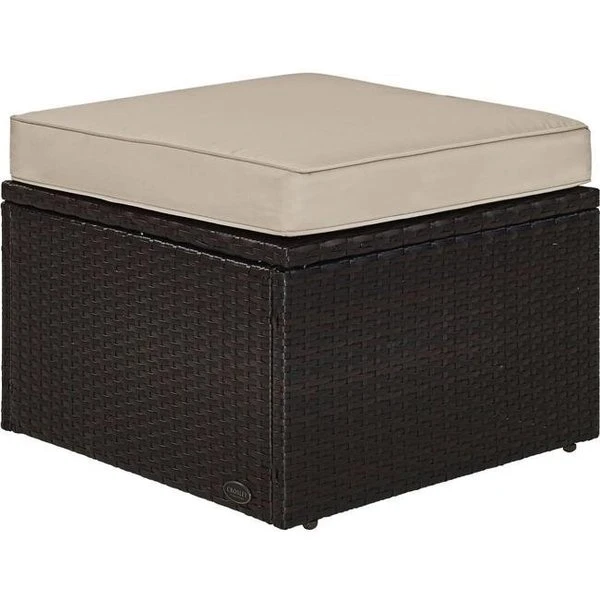 Enjoy entertaining outside with Crosley Furniture elegantly designed all-weather resin wicker ottoman. this finely crafted collection features intricately woven wicker over durable steel frames.FeaturesUV and fade resistant outdoor wickerHigh-quality Steel frame designed to last. easy to assembleHigh-grade cushion cores offer maximum durability and comfort.Color – Brown with Sand Cushions