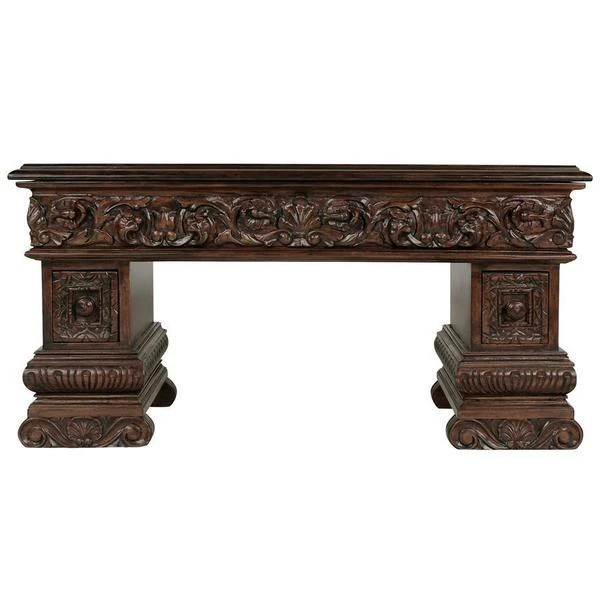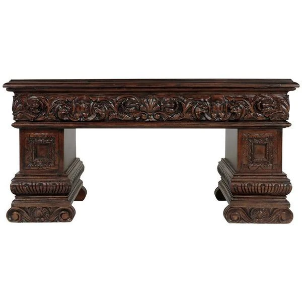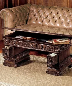 Yes, we know the "coffee table" is a modern affectation, so we've updated a late medieval antique with today's multi-functional design needs in mind. It takes a master craftsman over a week to complete this stunning work of hand-carved solid mahogany. Leafy organics and traditional shell motifs play amidst classic egg and dart design in this Toscano exclusive. Two small drawers and a locking, piano hinge lid make this work of art a functional antique replica. 401⁄2"Wx20"Dx201⁄2"H. 77 lbs.