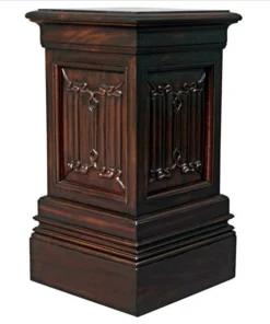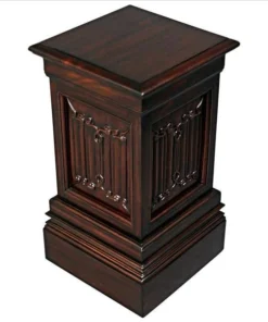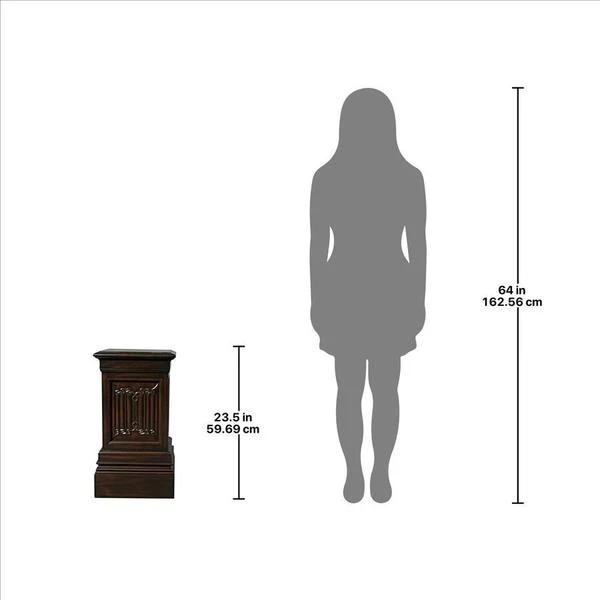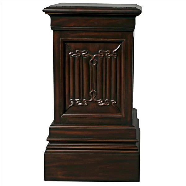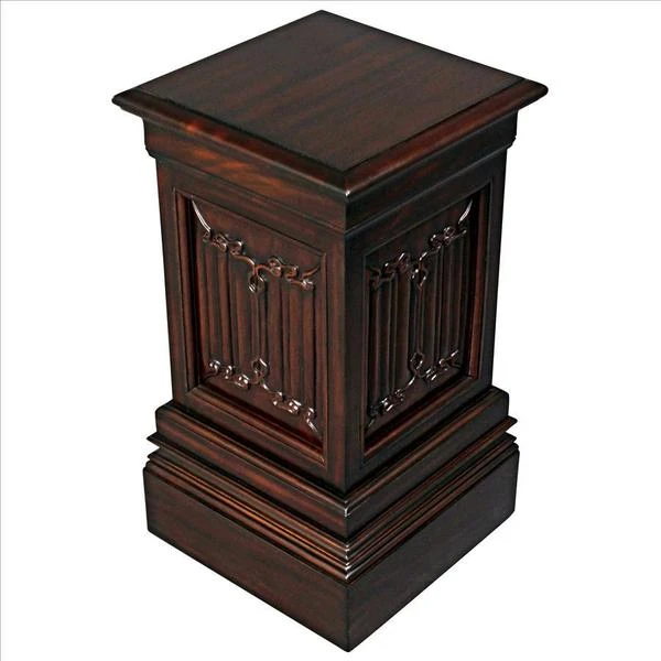 As a true investment in Medieval beauty, this mahogany pedestal stands as stunning hand-carved art in itself! The exquisitely carved linen fold ornamentation allows the beautifully versatile utilitarianism of this replica Gothic pedestal to shine beneath a hand-rubbed, antique finish that makes this focal piece perfect used alone or as a pair flanking a doorway or hearth. This investment in Gothic-style, hand-carved furniture art is a Design Toscano exclusive! Medium: 13"sq.x231⁄2"H. 22 lbs.