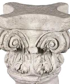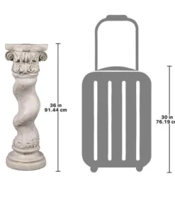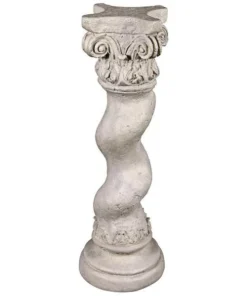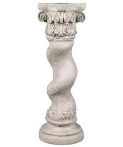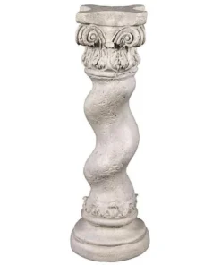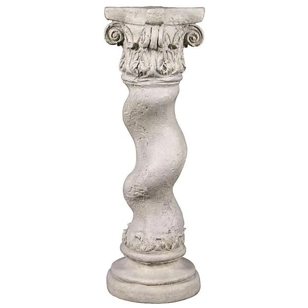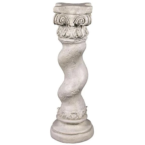 Influenced by opulent Solomonic Moorish design, this corkscrew column pedestal rises in an elegant spiral. An exquisitely embellished capitol top, with scrolls and acanthus leaves, is highlighted by a dramatic barley twisted shaft that will raise your art to true advantage. As your garden matures and flourishes over the season, your sculptural focal pieces, from statues to urns, can get hidden by the growth. Rise above the plants and give your garden centerpieces a position of distinction with our Capitoline Barley Corkscrew Pedestal. Our Design Toscano-exclusive Capitoline columnar riser is created in fiberglass reinforced designer resin with a weathered French limestone finish. Make a grande statement with this elegant corkscrew spiral plinth base, indoors as a plant stand or in the garden lifting your prized statuary or greenery to new elevations. 12"dia.x36"H. 13 lbs.