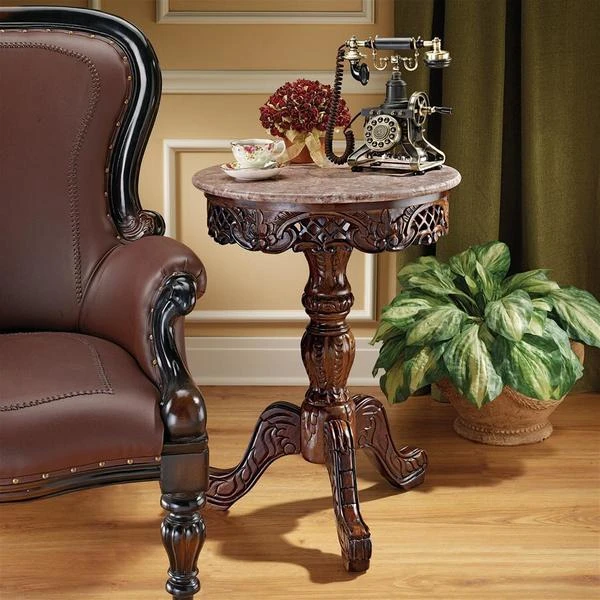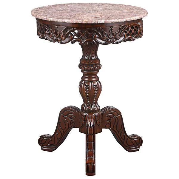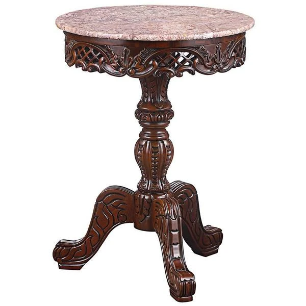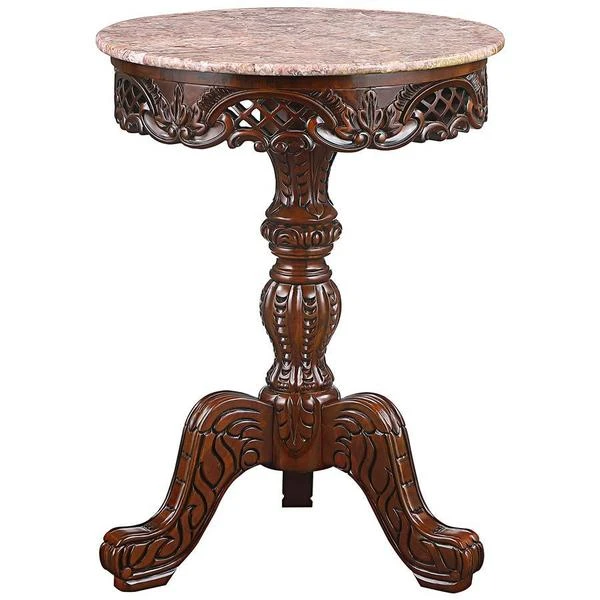 When a pedestal side table is the perfect decor solution, our ornately hand-carved, Louis XV-style, European-inspired Chantret end table will exceed expectations. This versatile, solid hardwood Design Toscano-exclusive accent table boasts intricate fretwork and beautiful acanthus details that require two days of careful work by a master carver before being crowned with a rose-hued, solid marble top. Simple assembly required. 22"dia.x30"H. 41 lbs.