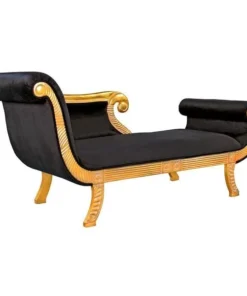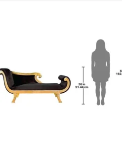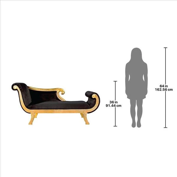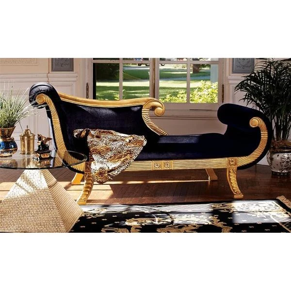Like the famous ruler herself, our Design Toscano-exclusive, fit-for-a-queen chaise does a feline stretch in more than six feet of rich ebony fabric upholstery. With deeply hand-carved, scrolled arms and footrest highlighted with gold gilding, this Egyptian Revival work of fine mahogany furniture art boasts the sensuous curves of its fabled namesake and is sure to claim a place of honor among your treasures from around the world. Simple assembly required. 75"Wx29"Dx36"H. 77 lbs.