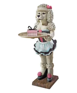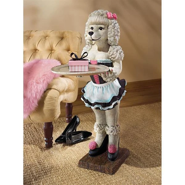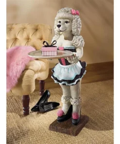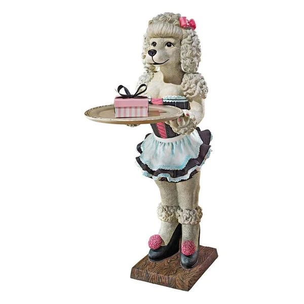 Our favorite French poodle serves up a removable tray with true French flair that's both tres chic and tres sassy! Standing nearly 3 feet tall from her fluffy Paris hairdo to her pompom slippers, Coco is a tastefully hand-painted quality designer resin charmer who's as comfortable in your Parisian boudoir as she is holding perfume bottles in a powder room or champagne cocktails next to a favorite chair. We have even envisioned our pampered pooch as a Parisian greeter at your favorite stylist salon. Ooh-la-la, she's a Design Toscano exclusive! 111⁄2"Wx21"Dx34.5H. 22 lbs.