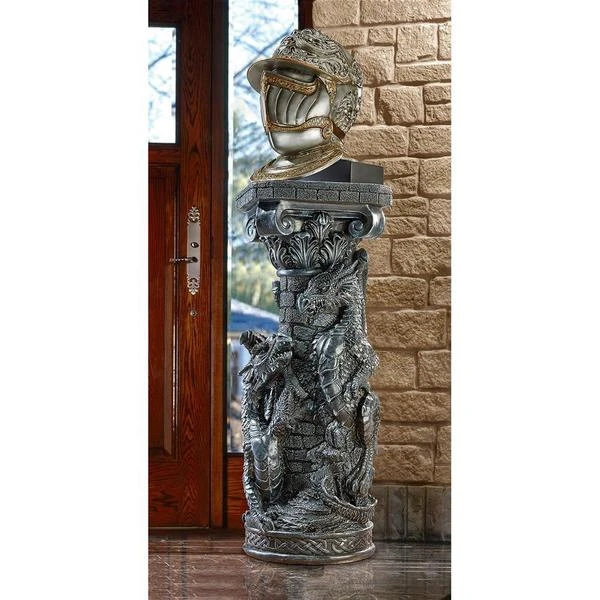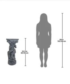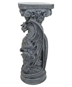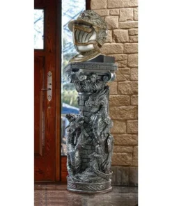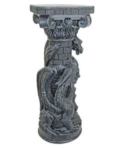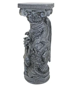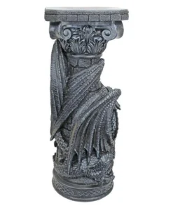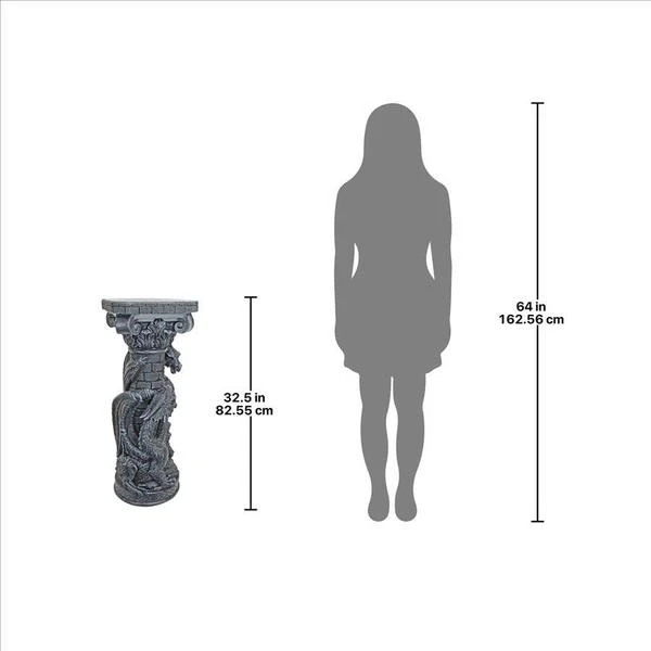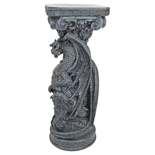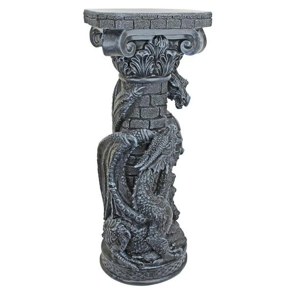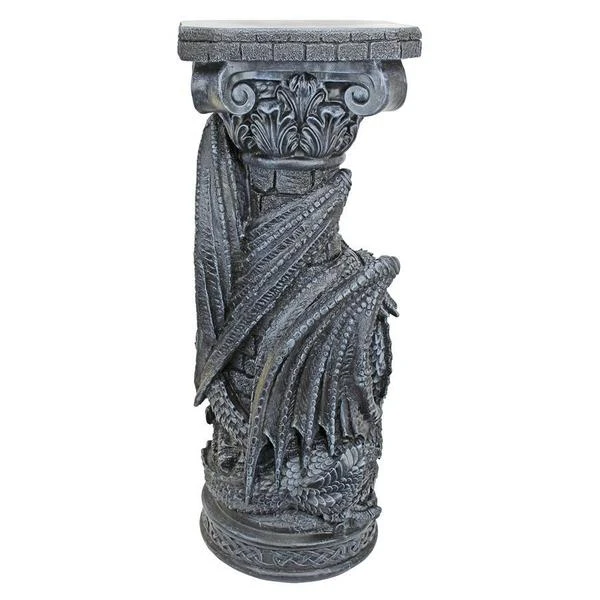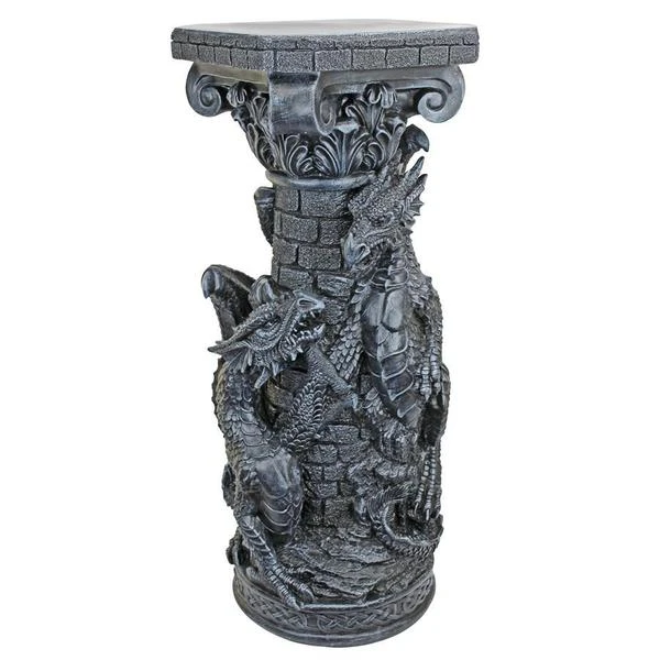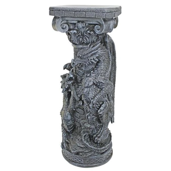 Drawing upon his grandfather's tales, collectible artist Liam Manchester says he envisioned this breathtaking Gothic work of art as the perfect focal point for a mystical home or garden. Legend says that a Celtic wizard left two warrior dragons to protect a Medieval fortress crypt from knight and beast, but because he never returned to relieve them, these fire breathing Gothic guardians continue to haunt crypts and mausoleums to this day. Sculpted exclusively for Design Toscano with epic detail from spiny wings to powerful claws, these creatures who wrap themselves around their almost yard-tall column were cast in quality designer resin and hand painted in a wickedly wonderful hue. 13" D x 321⁄2" H. 35 lbs.