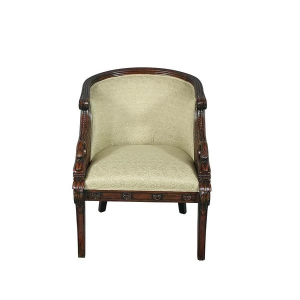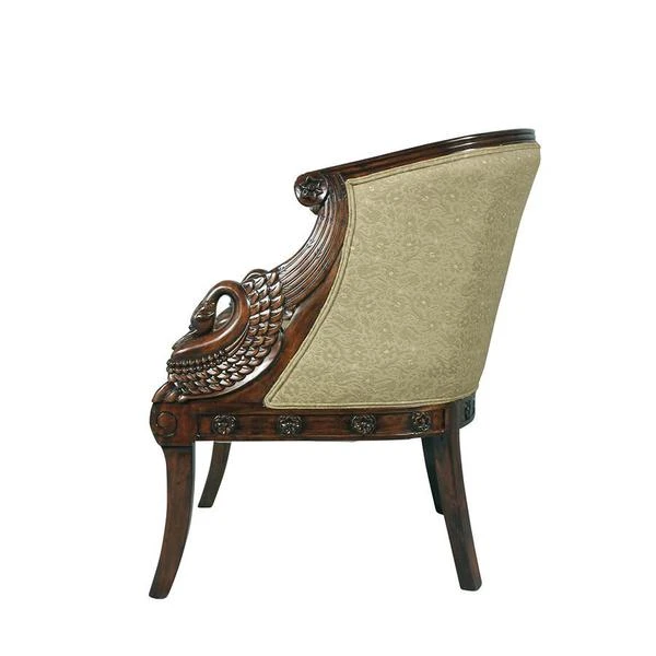 This exquisite early 19th century Italian-inspired tub chair boasts two intricately handcarved swans whose wake wraps to form a gently bowed backrest. You'll sink into the comfortable suspension, upholstered front and back in a quality, muted celadon jacquard. The glowing mahogany of this stylish, period work of furniture art enhances its historic lines and adds to the deep-seated comfort of this Toscano exclusive created by our master carvers. See additional views for details. 271⁄2"Wx23"Dx33"H. 29 lbs.