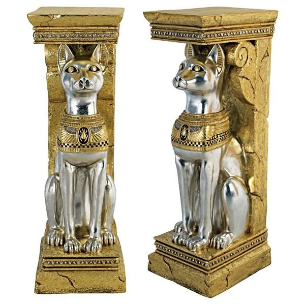 Ancient Egyptians believed cats to be the embodiment of Bastet, the goddess of the sun's warmth and life-giving power. Our highly detailed, quality designer resin pedestal sculpture featuring Bastet is finished with the real gold and silver leaf of the original Egyptian palette. You'll love displaying your treasures atop this extraordinary, more than three-foot-tall statue adorned with period detail. This large-scale, display-quality indoor sculpture transforms any home bar, entertainment area or recreation room into something truly magnificent! 141⁄2Wx13"Dx371⁄2"H. 21 lbs."