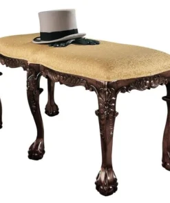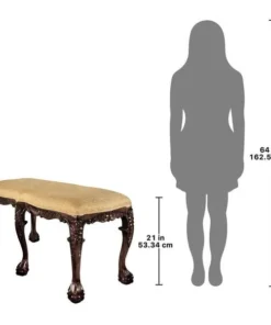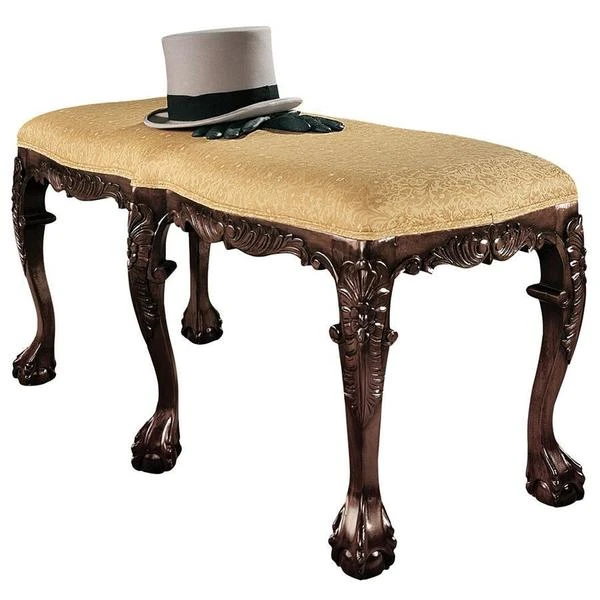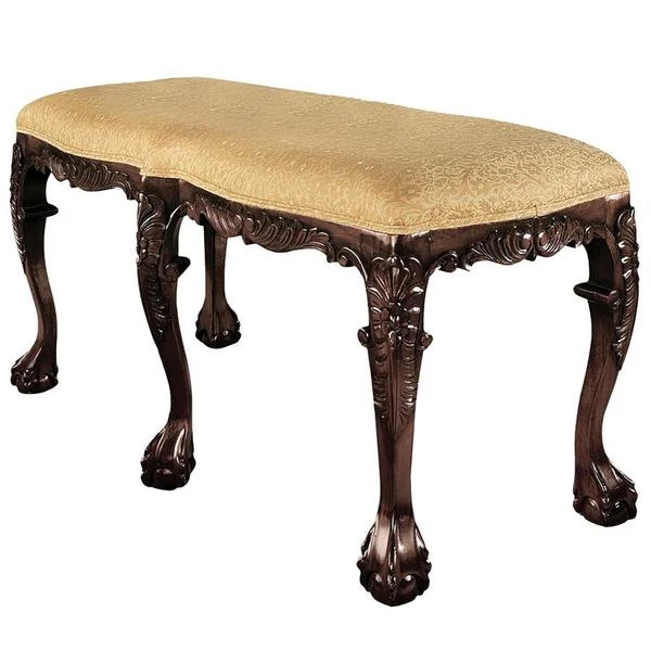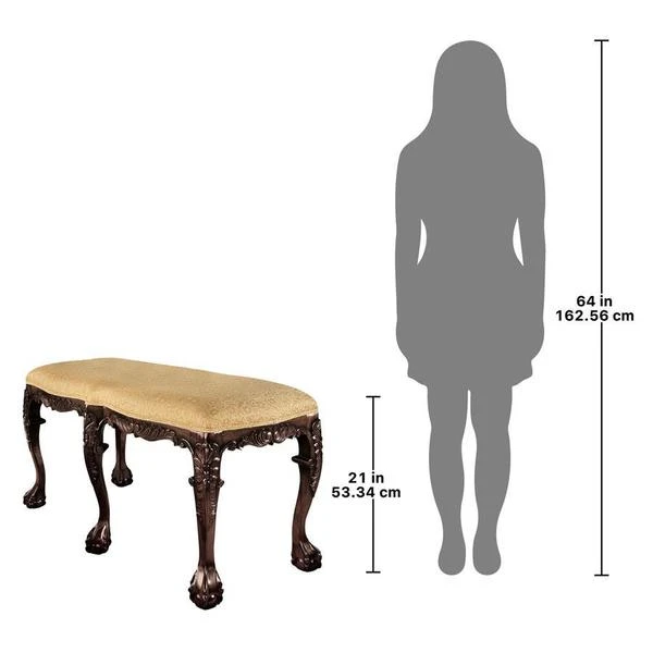 Whether in your foyer, in front of your grand fireplace or at the end of the bed in your master suite, this French Baroque Bench is generously sized to seat up to 3. For authentic character, our exclusive bench is handcarved of solid mahogany hand-rubbed to a burnished finish and distressed just enough to replicate a true antique. Its cabriole legs with carved claw-and-ball feet rise toward a honey-colored upholstered seat to blend easily with any decor. 47"Wx21"Dx21"H. 28 lbs.