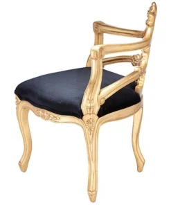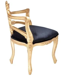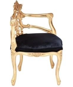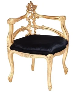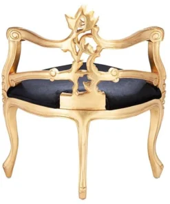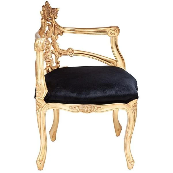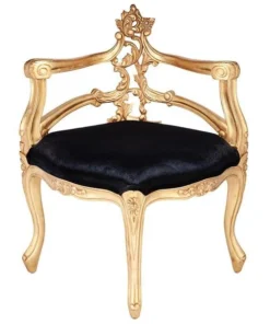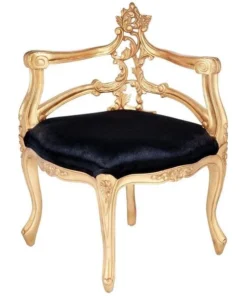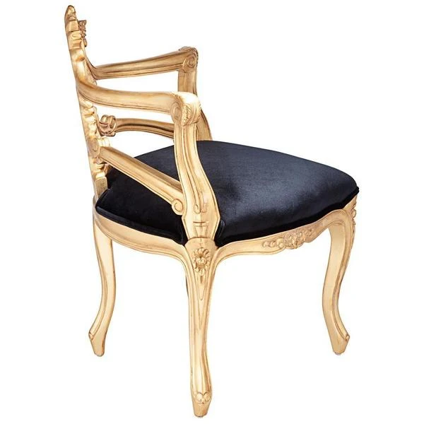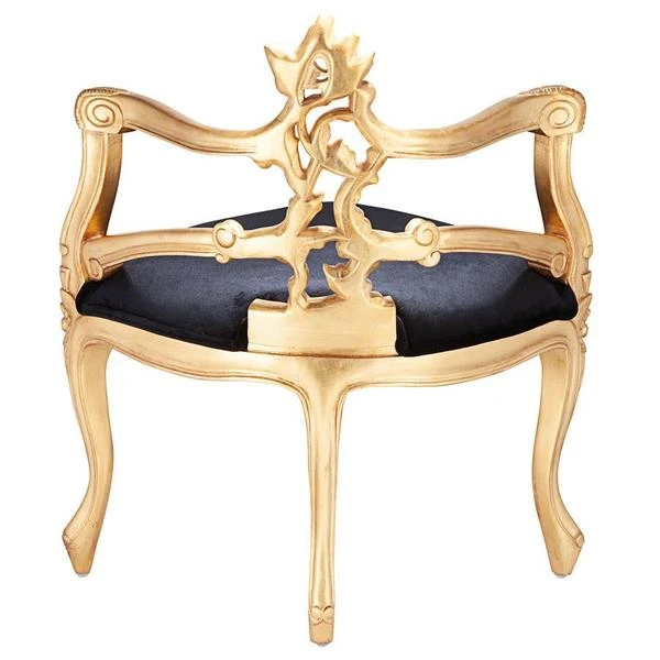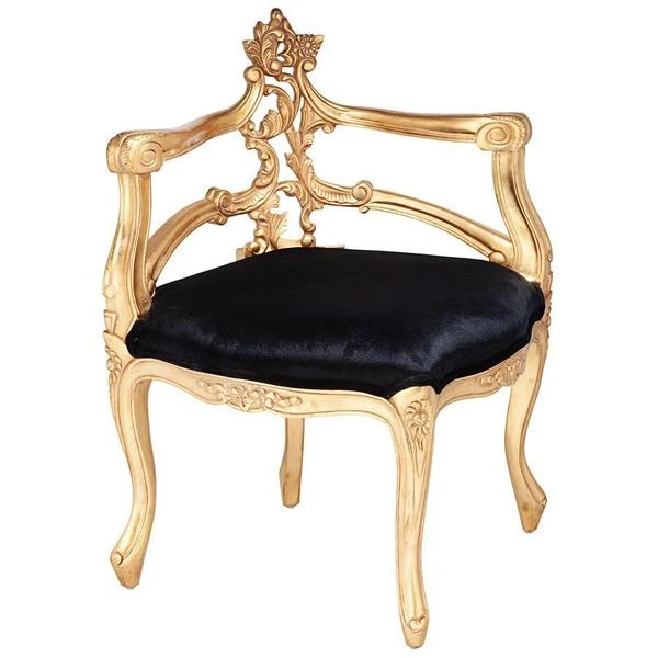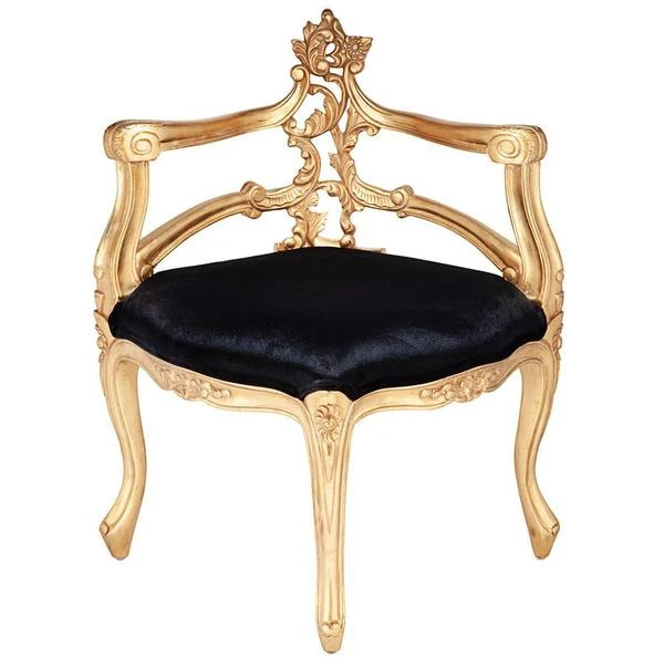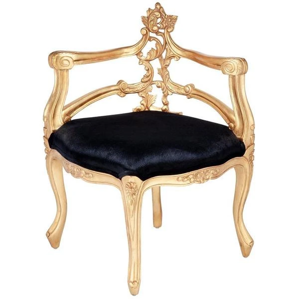 Trails of exquisitely hand-carved acanthuses conspire to create the backrest for our Design Toscano-exclusive, solid mahogany corner chair. Sculpturally unique, this petite slipper-style work is hand finished in real gold leaf sure to brighten your room, and is smartly upholstered in a soft ebony velveteen upholstery. It is perfect in your living room, at a dressing vanity, or in a luxury bath. 201⁄2"Wx201⁄2"Dx321⁄2"H. 12 lbs.