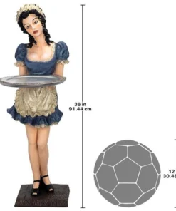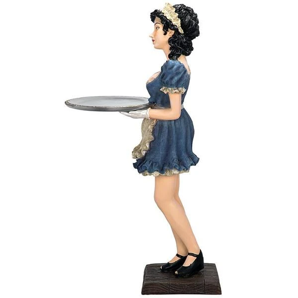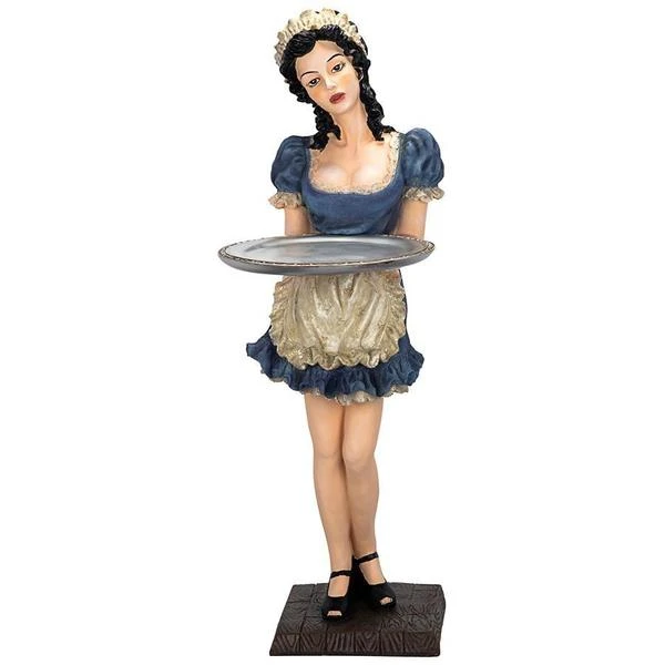 This voluptuous mademoiselle happily serves at buffet or bedside, her removable designer resin tray and scaled French flower pail ready for your dried arrangements! In her hand-painted white apron and black high heels, three-foot tall "Genevieve" will provide many years of loyal service – and never, ever reveal what goes on behind closed doors. A Toscano exclusive. Tray is painted silver. 10"Wx11"Dx36"H. 19 lbs.