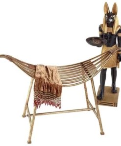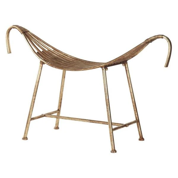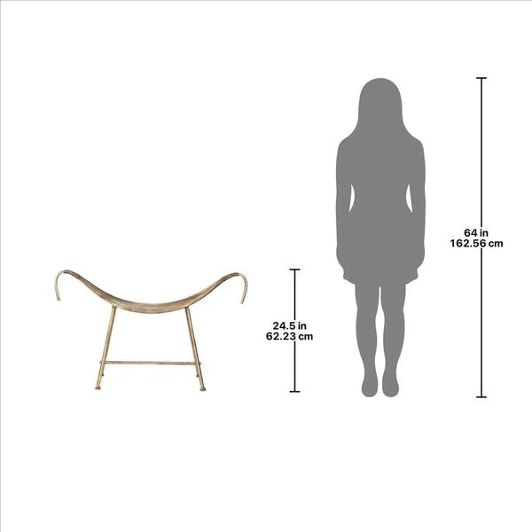 With an elegant silhouette reminiscent of the Egyptian boats found in 7,000-year-old petroglyphs and crafted of papyrus reeds from the Nile River, this artistic work of furniture art gives a nod to the history of ancient Egypt. Add a touch of the exotic to your home decor with this metal bench that rises from sturdy faux-reed legs toward a curved seat with a perfectly balanced sweep of bow and stern. Finished by artisans in an antiqued gold hue, this versatile chameleon for living room, boudoir or bath is found exclusively at Design Toscano. Simple assembly required. 411⁄2"Wx141⁄2"Dx241⁄2"H. 10 lbs.