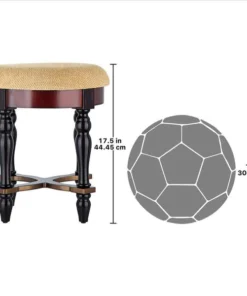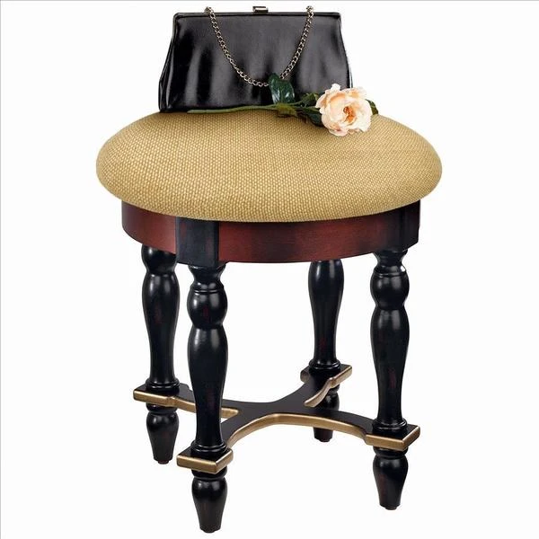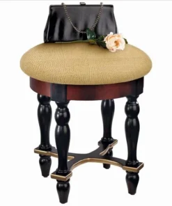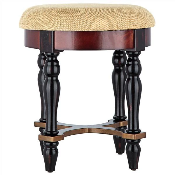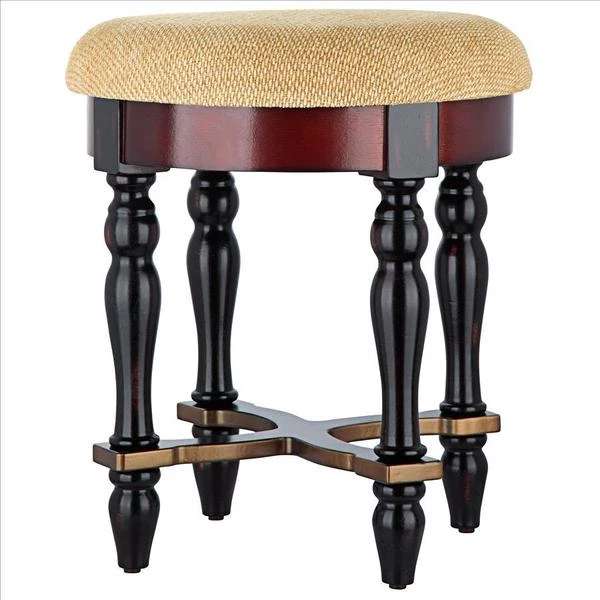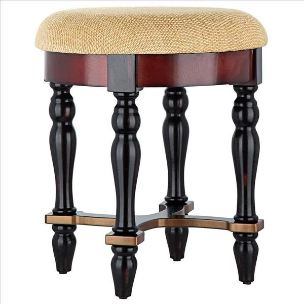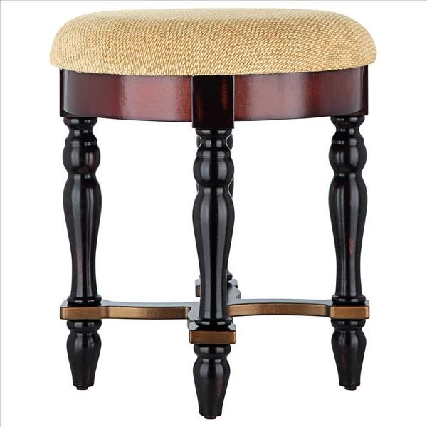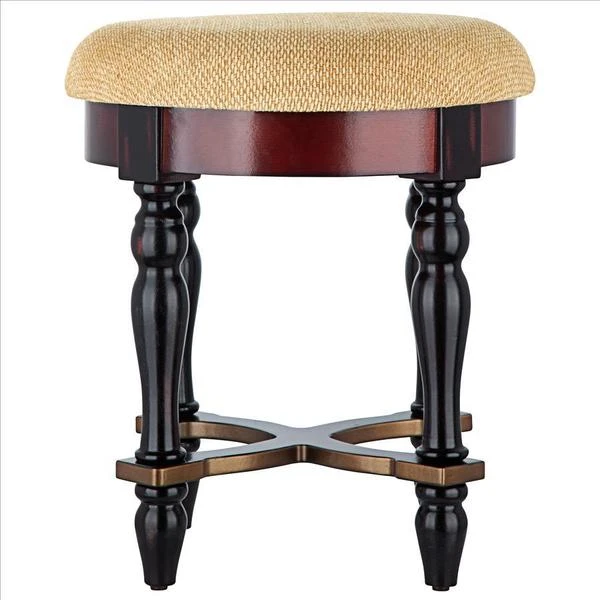 Rising from hand-turned legs to a perfectly cushioned, soft brushed chenille upholstered seat, this solid hardwood stool is ideal bedside, in a luxury bath, or at a ladies' vanity. This versatile, dark walnut-hued work of European-style furniture art is a refined, yet practical addition to home decor. 15"dia.x171⁄2"H. 7 lbs.