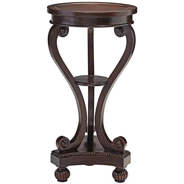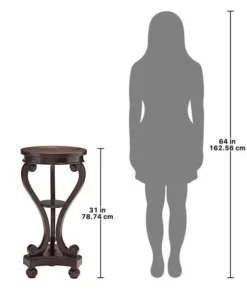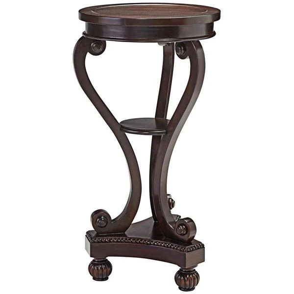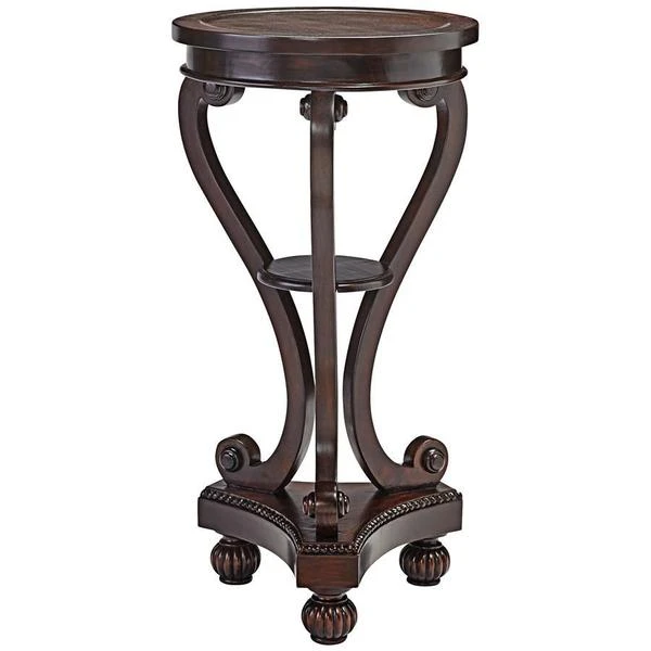 With a hint of Victorian detail, this charming work of furniture art bridges styles with its gracefully bowed legs and romantic curves that are a true symphony of design. Rising on three curved serpentine supports, this mahogany beauty is a classic example of Victorian furniture art. To give it distinctive, period style, our artisans spend over 3 days intricately hand-crafting this solid mahogany work to echo the fine craftsmanship of centuries past. Atop its distinctive bun feet, this Design Toscano exclusive is the perfect accent, equally ready to display your favorite art. 151⁄2"dia.x31"H. 12 lbs.