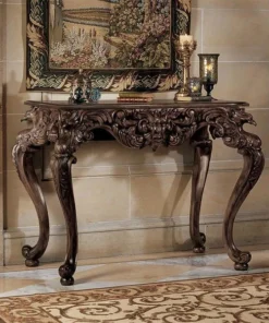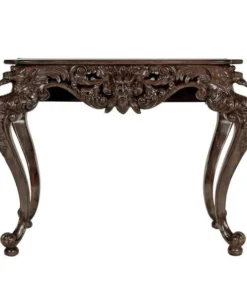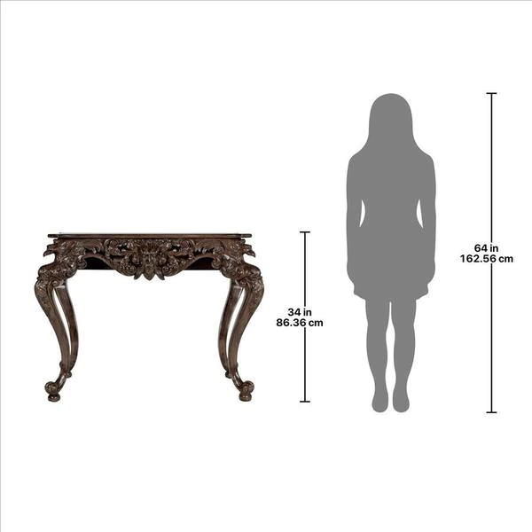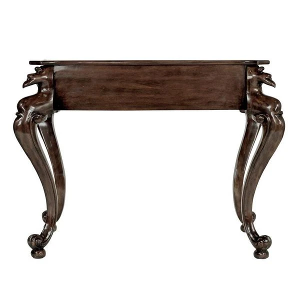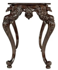 It takes our skilled artisans 5 full days to hand-carve the greenmen and griffins that spring forth with the inimitable charm that brings this Toscano exclusive so many admiring comments. Meant to rest against a wall, three sides of this stately, almost-yard tall, quality solid mahogany work are hand-carved with griffins. The hand-rubbed, antique finish gives our table the presence of a true antique while the high quality veneer top assures that it remains a true investment in European-style, hand-carved furniture art. Simple assembly required. 451⁄2"Wx27"Dx34"H. 49 lbs.