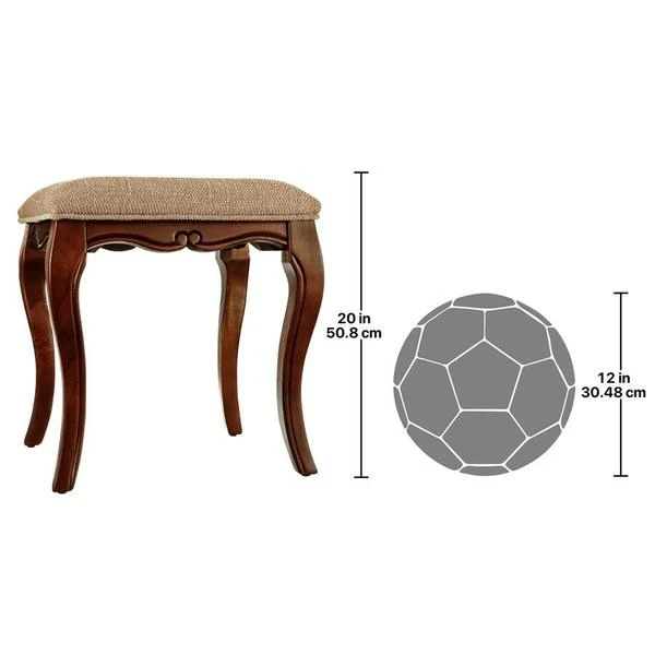 Choose an elegantly sophisticated seating solution for boudoir or bathroom vanity with this hardwood work of European-style furniture art. Our Design Toscano exclusive rises on shapely cabriole legs toward a welted, tone-on-tone upholstered cushion. This true chameleon is at home in most any decor. 17"sq.x20"H. 8 lbs.