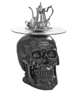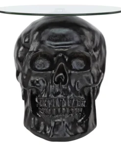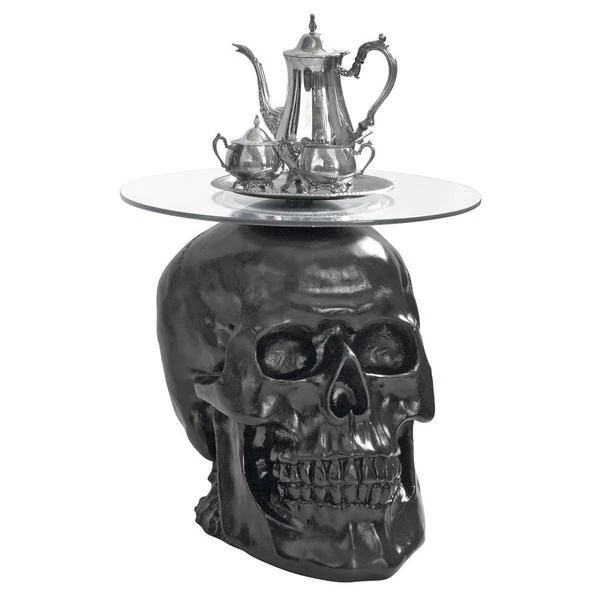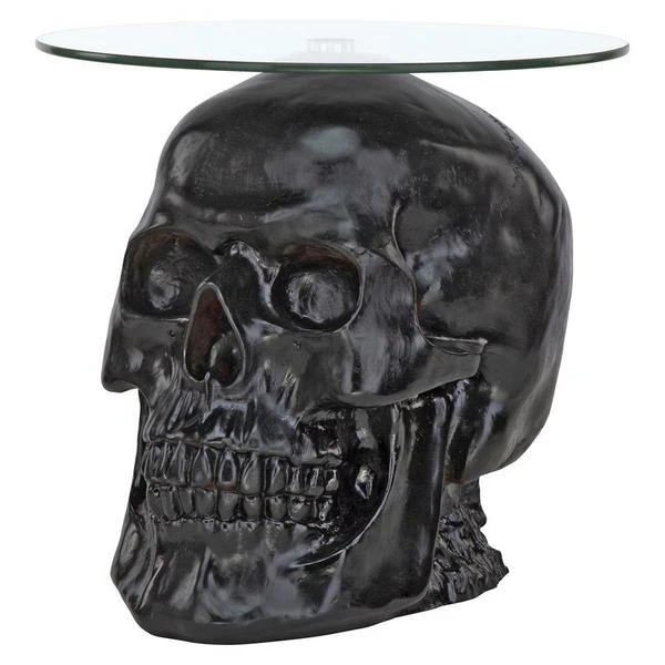 Put it all out on the table! Perhaps you'll find your own soul by displaying our larger-than-life Lost Souls Table! Our Toscano-exclusive skull sculp table makes a ghoulish statement when cast in quality designer resin and finished in a matte black hue. Topped with a 3⁄8"-thick, pencil-edged glass top, this work of furniture art serves the soul and becomes a sure-fire conversation starter near a favorite chair in an industrial loft, Medievel castle or Gothic home bar. Found only at Design Toscano! 21"dia.x191⁄2"H. 36 lbs.