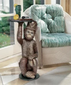 Whether you use his banana leaf tray to serve guests or you simply choose to admire the painstaking detail of this mischievous monkey's face and jaunty fez, you'll be charmed. Cast in quality designer resin for use in home or garden, this exclusive Toscano sculpture lends exotic flair and style to any decor. 16"Wx131⁄2"Dx291⁄2"H. 20 lbs.