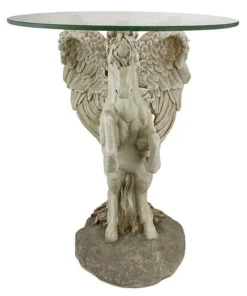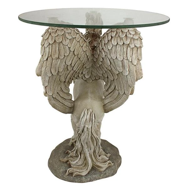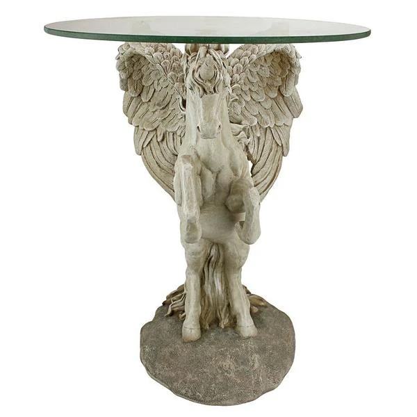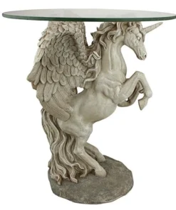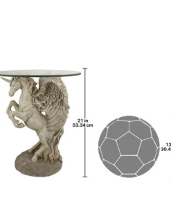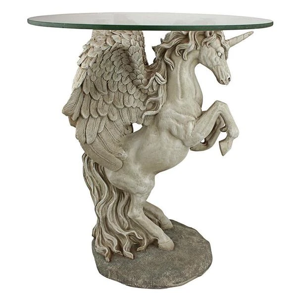 Add the majesty of the mystical unicorn to home or garden with this amazing signature piece that creates a distinctive piece of decor that isn't soon forgotten! One of the most unique approaches to decorative fantasy art we've seen, our Design Toscano exclusive is sculpted 360-degrees to be admired from all sides, and then is topped with a 3/8"-thick, pencil-edged glass top. Our enchanting sculpt is cast in quality designer resin with a faux stone finish to transform with its magic and myth. 16"Dx21"H. 19 lbs.