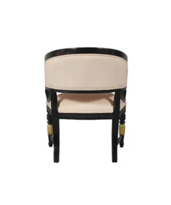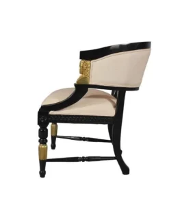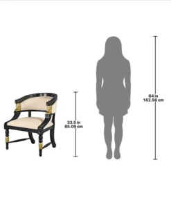 With the stately display of true Neoclassical style, our quality mahogany replica ushers in period revival. The welted, cotton twill upholstery fabric wraps the comfortable suspension of this traditional barrel chair. Our Design Toscano exclusive boasts an ebony finish accented by hand-painted golden-gilded pharaohs that set off the Egyptian revival style. 241⁄2"Wx26"Dx331⁄2"H. 23 lbs.