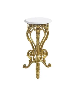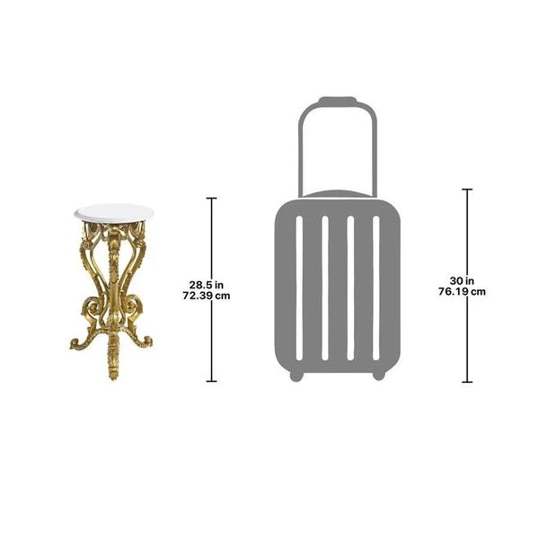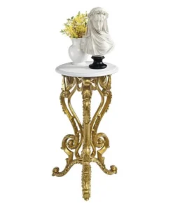 Adopt a stylish French accent with this right-sized spot for a favorite sculpture or showy potted plant. Replicated from the highly sought after Louis XVI Quridon tables of the late 18th century, this ornamental work with elegant Baroque arch is cast in quality designer resin with a faux marble top and gold gilding. Imagine a pair flanking an entry or grand staircase! This clever approach to furniture decor is – as you'd expect – found only at Basil Street Gallery! 15"dia.x281⁄2"H. 25 lbs.