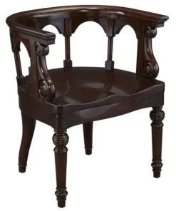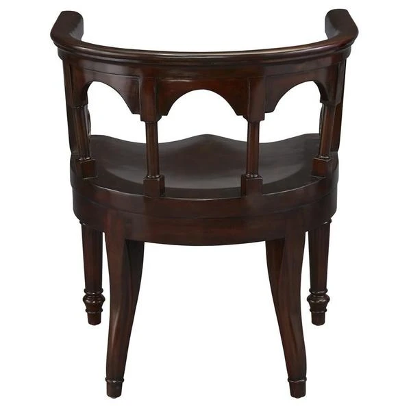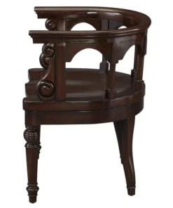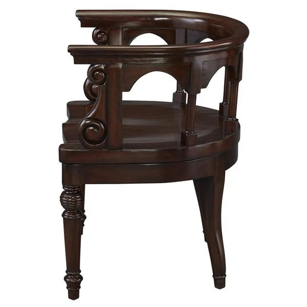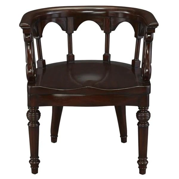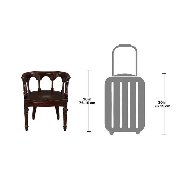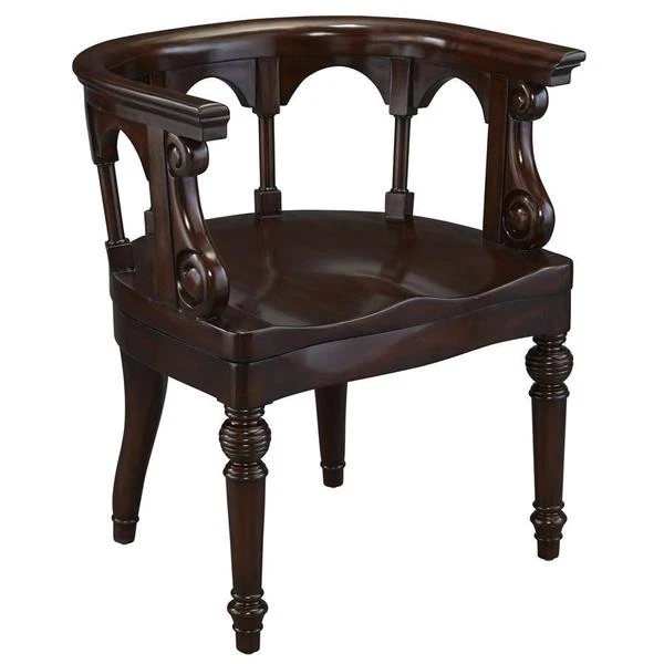 It's easy to see why this handsome Regency style mahogany chair, named for the son of Britain's King George III, became an instant favorite! Rising from reeded front legs and shapely saber back legs toward a comfortably scooped seat, each hardwood chair features colonnade spindle arch balusters across an artistically curved, traditional captain's chair back. A Design Toscano exclusive, this heavyweight mahogany wood chair is highlighted by a chocolate brown finish to showcase its fine lines. A pair provides just-right seating at a table, in an entryway or in the den. Simple assembly required. 25"Wx24"Dx30"H. 55 lbs.