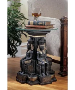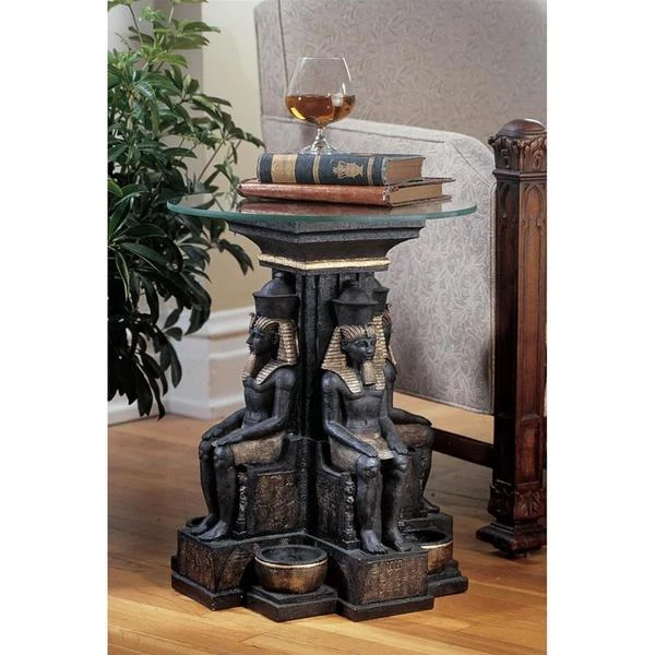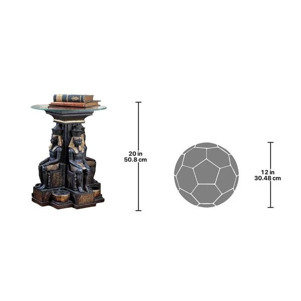 Cast in quality designer resin, this Toscano exclusive is crowned with a figure of the goddess Isis that shines through the 3/8"-thick, 16" diameter, pencil-edged, quality glass top. Add exotic flair to any room with this stunning cocktail table! 16"dia.x20"H. 20 lbs.