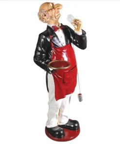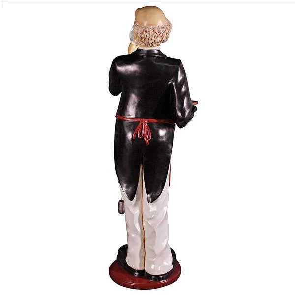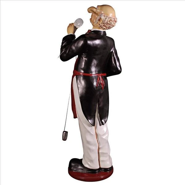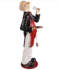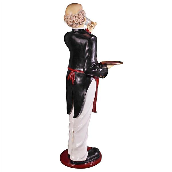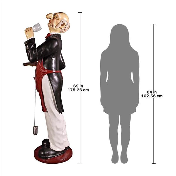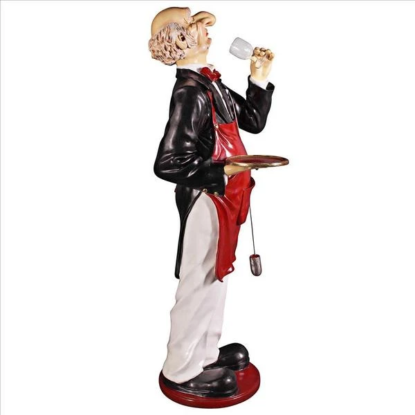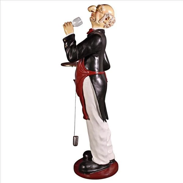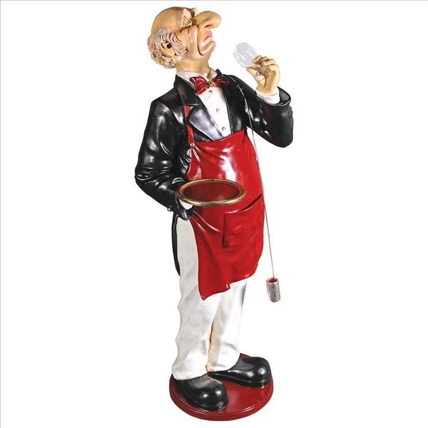 With a giant nose trained for the best wine, our whimsical Sommelier serves, his tray held aloft, ready to hold anything, from wine glasses to your finest vintage. This six-foot statue, sculpted in high-quality, fiberglass-reinforced resin, is impressive whether used for home entertainment or retail display. Finely hand-painted one piece at a time, from his red bowtie to metal barrel dipper, our wine steward will provide many years of faithful service. This large-scale, display-quality sculpture transforms any home bar, entertainment area or restaurant into something truly magnificent! 251⁄2"Wx20"Dx69"H. 40 lbs.
