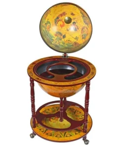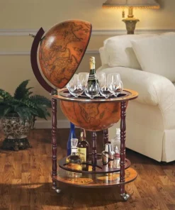 Impress guests with the Old World charm of our elegant 22" dia. Italian-style globe bar, wrapped with replica 16th-century nautical maps from the National Museum of Science, Florence. Opening from its hinged meridian to reveal artistically hand-painted interior frescoes reminiscent of domed ceiling contraspecto ("view from the heavens"), our Toscano-exclusive work of furniture art boasts secure spots for your treasured bottles and glasses. A trio of handsome, turned hardwood legs rises from rolling casters and a circular lower shelf, allowing additional storage and a celebration that can be moved anywhere! Simple assembly required. See Additional Views for details. 22"dia.x381⁄2"H. 21 lbs.