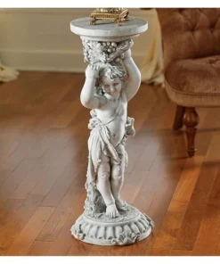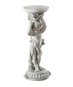 Blending pure European artistic style with the function of a quality, yard-all pedestal, this French Rococo inspired classic is deeply sculpted with a chubby cherub beneath a bountiful grapevine. Our exclusive is cast in quality designer resin and finished in antique stone. 15"dia.x36"H. 23 lbs.
