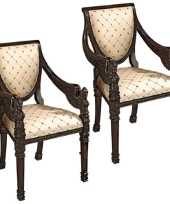 Two angels with feather wings flank the ornate carvings in the mahogany construction that rises to wrap the shield back design of this work of furniture art. Stately and comforting, its tapered square feet give way to a welted cream and gold lattice print upholstery sure to add grace to any decor. Whether you choose this Design Toscano exclusive chair for living room, bedroom, entry hall or even a fashionable office, you'll fall in love with its timeless style. 24Wx19"Dx38"H. 24 lbs. "