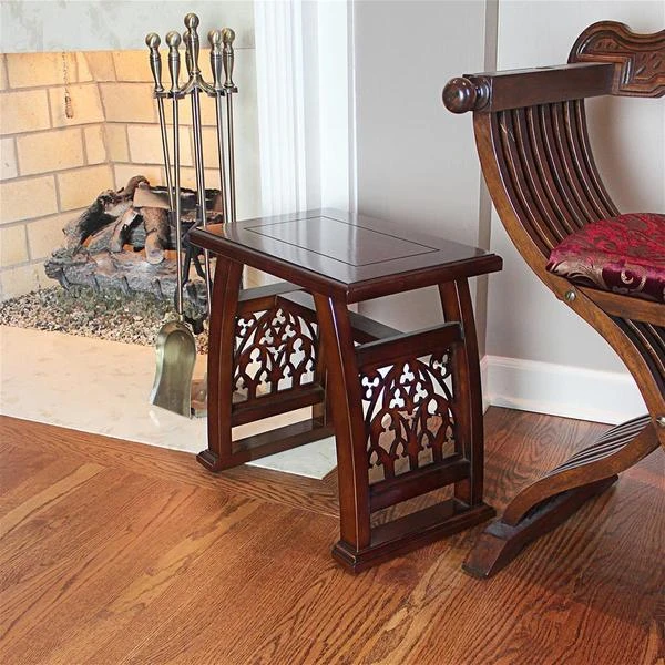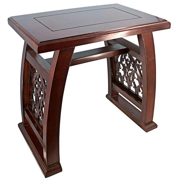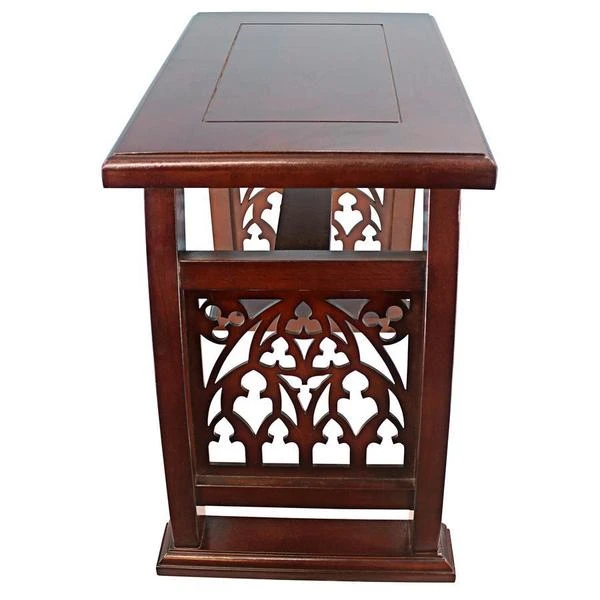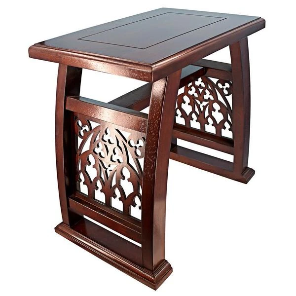 Like a soaring cathedral, Gothic fretwork rises on both sides of this 18th century European reproduction stool, named for the patron saint of education. Created of handcrafted wood in a richly dark finish, this Medieval style bench seat is instantly useful near a library bookshelf, a lavish boudoir, or a luxury bath. Our Design Toscano exclusive is a chameleon with most any decor! 191⁄2"Wx12"Dx171⁄2"H. 10 lbs.