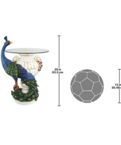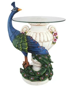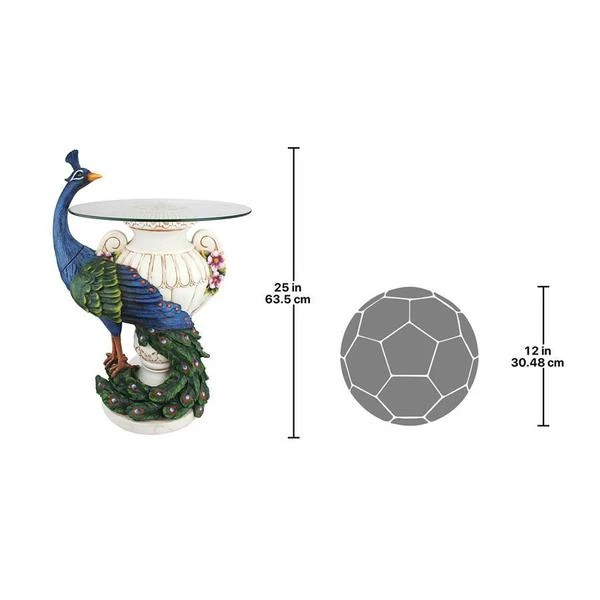 Set your lamp, greenery or favorite beverage atop this fully functional table inspired by peacocks like those that have roamed the Netherlands Staverden Castle since the 1400's. The graceful, organic form of this majestic bird has been sculpted 360-degrees in an artistic serpentine curve so that you may admire it on all sides. From its plumed head to the colorful peacock feathers that wrap a faux alabaster vase, it is cast in quality designer resin, each feather is hand painted in the bird s royal palette exclusively for Design Toscano. Simple assembly required. See our bestselling companion statue in antique stone. 171⁄2"Wx16"Dx25"H. 14 lbs.