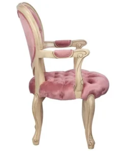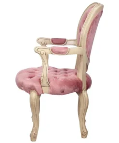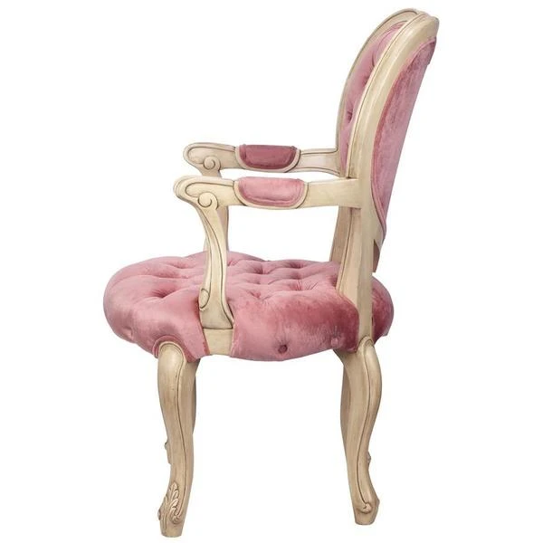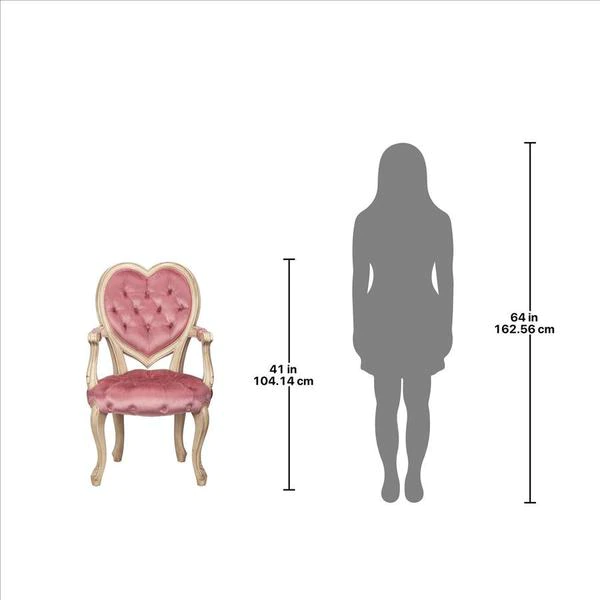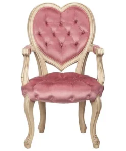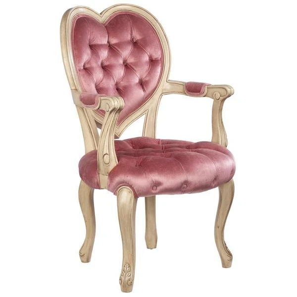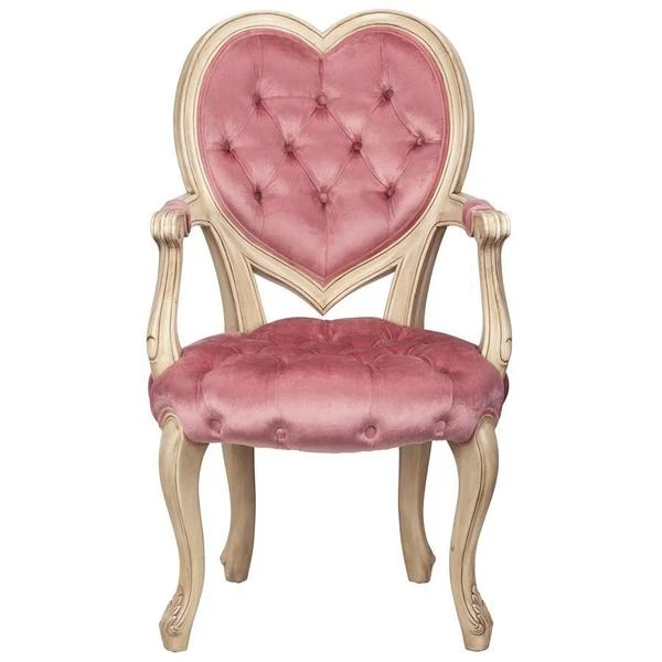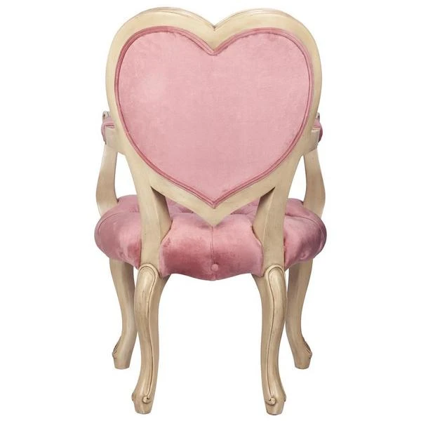 You'll be hard pressed to find a more feminine chair than this classic sweetheart beauty created with elegantly shapely curves in the French Provincial style! The solid mahogany frame is hand finished in a soft cream hue before it is upholstered and hand-tufted with a plush, velveteen fabric that showcases a heart-shaped back and lovely tufted seat. The unique silhouette of this girly-girl chair makes it simply unparalleled in the boudoir, in retail or photography studios, or as part of the wedding celebration of a very special bride and groom. Unforgettable! 26"Wx24"Dx39"H. 24 lbs.