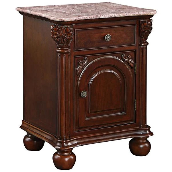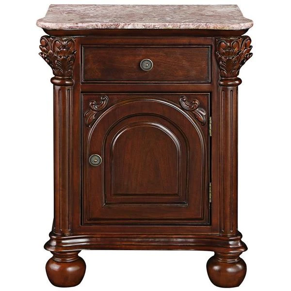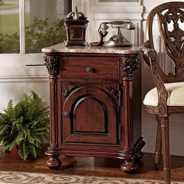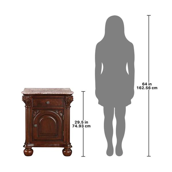 Perfect next to a sofa, or alongside a Victorian bed, the exquisitely hand-carved, solid hardwood and rose-hued, hand-cut marble makes this versatile side table a true standout! Named after the Italian city renowned for its violins, our work of furniture art echoes the woodworkers' skill while rising on Corinthian columns toward a single storage cabinet door and spacious drawer with decorative handle. Our Design Toscano-exclusive replica showcases a solid expanse of marble to create an artistically functional work of furniture art. Simple assembly required. 22"Wx161⁄2"Dx291⁄2"H. 61 lbs.