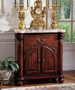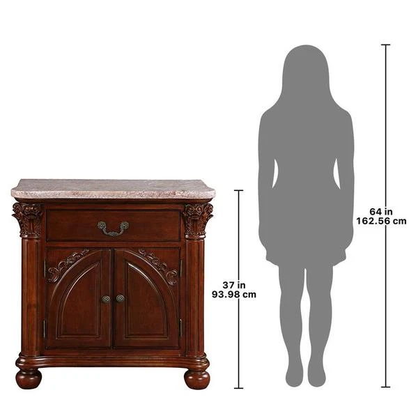 You won't know which to admire first-the exquisitely hand-carved, solid hardwood or the nearly yard-long, variegated rose, natural marble! Named after the Italian city known for its fine quality violins, our console table echoes the woodworkers' art while rising on bun feet and Corinthian columns towards double storage cabinet doors, a single shelf, and a spacious drawer with decorative handle. Our Design Toscano-exclusive replica showcases a solid expanse of marble to create an artistically functional work of furniture art. Simple assembly required. 35"Wx20"Dx37"H. 134 lbs.