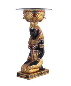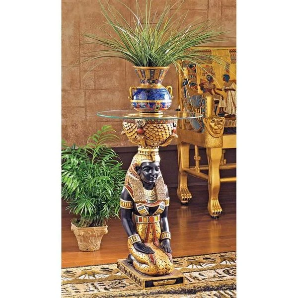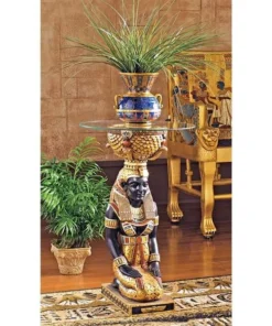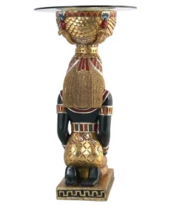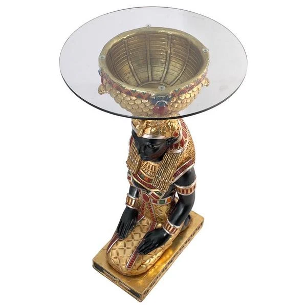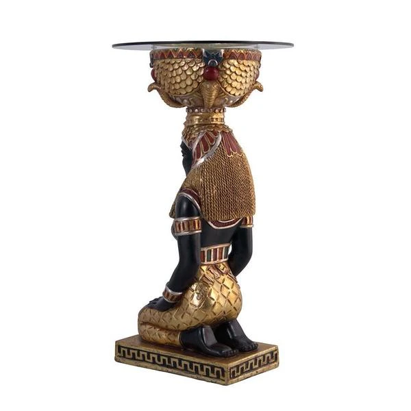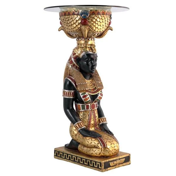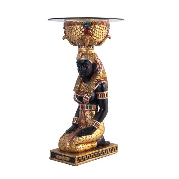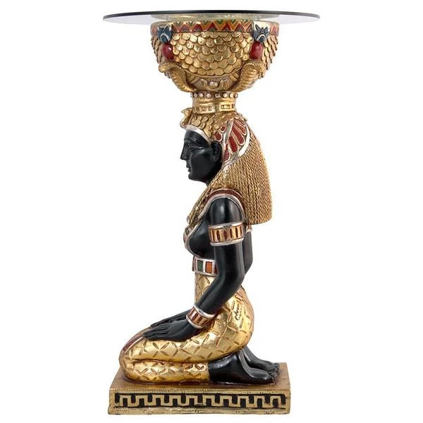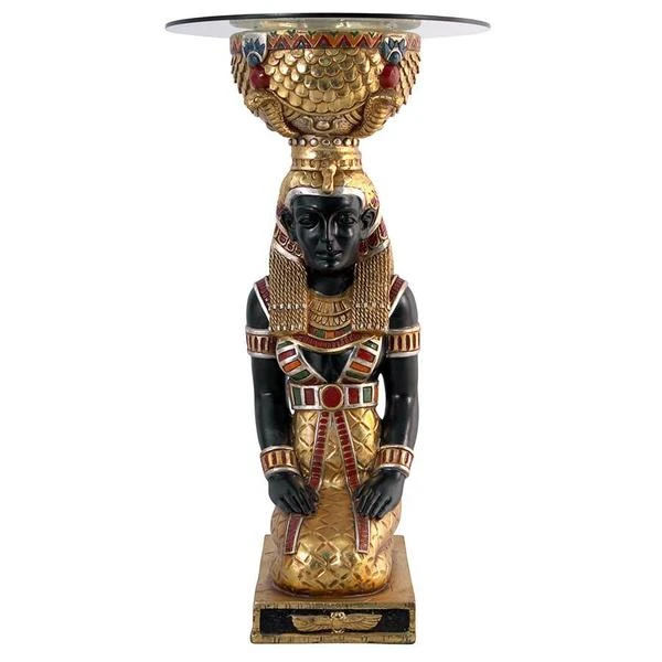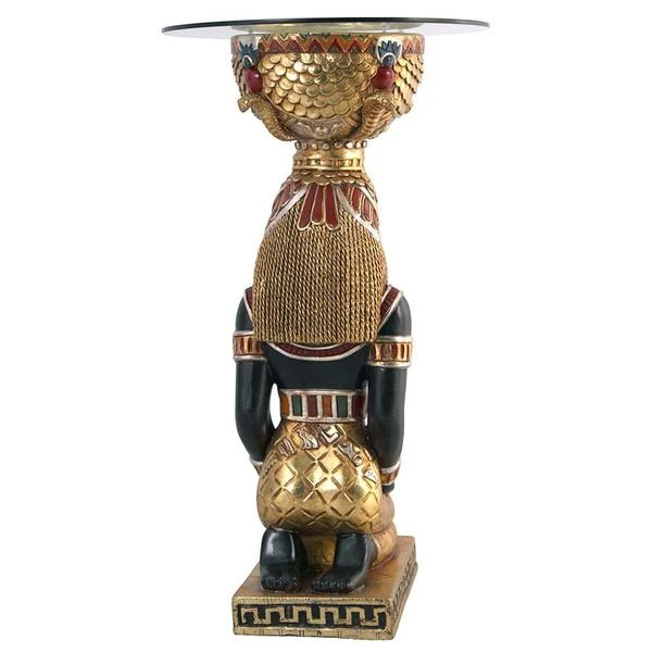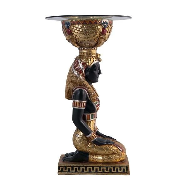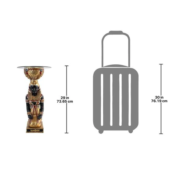 Named for one of the most important goddesses of ancient Egypt, Eset (or Isis) kneels atop a winged scarab pedestal in this artistic synergy of style and function ready to be admired from all angles. Our Toscano exclusive, cast in quality designer resin and hand finished in real gold and silver leaf and the rich tones of the Egyptian palette, is exquisitely displayed beneath a 3/8"-thick, 16"-dia. glass top. Simple assembly required. 91⁄2"Wx13"Dx29"H. 9 lbs.