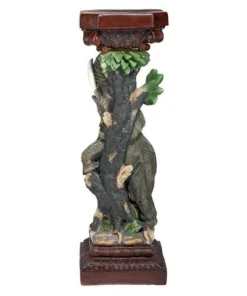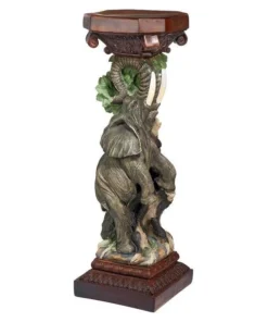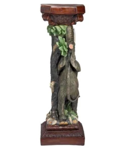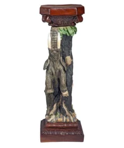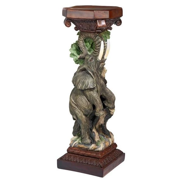 Breathtaking alone as sculptural art, this functional work of furniture art also promises to display treasures or greenery to optimum advantage atop its more than yard-tall pedestal. Boasting a magnificent beast of burden rearing on hind legs to showcase faux-ivory tusks, this centerpiece is cast in quality designer resin and meticulously hand-painted in natural tones and faux-wood for a touch of the exotic. 13"Wx13"Dx391⁄2"H. 29 lbs.