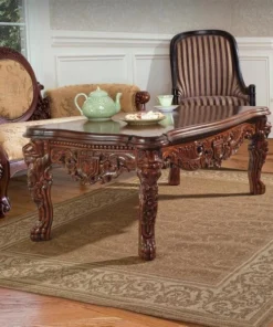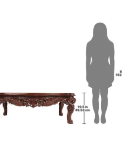 Our exclusive, medieval antique replica is a stunning masterpiece boasting deeply carved lions heads with bared teeth, majestic lion paws and heraldic crests carved into each side. Toscano craftsmen take more than ten days to create this handsome table from fine mahogany, hand-rubbing it to a burnished finish and distressing it just enough to replicate a true antique. Named after Lord Samford Raffles, who founded the British colony of Singapore, this statement piece is an investment in fine European styling. Simple assembly required. 55"Wx29"Dx191⁄2"H. 45 lbs.