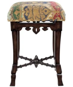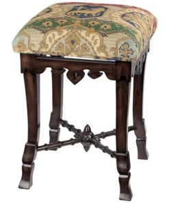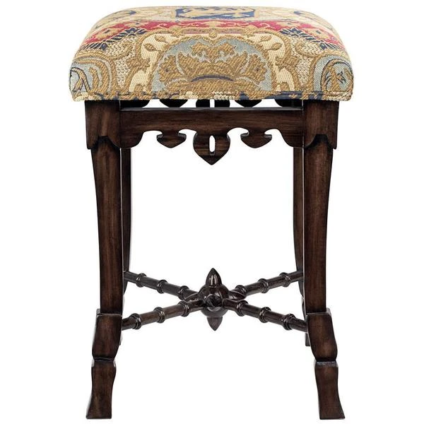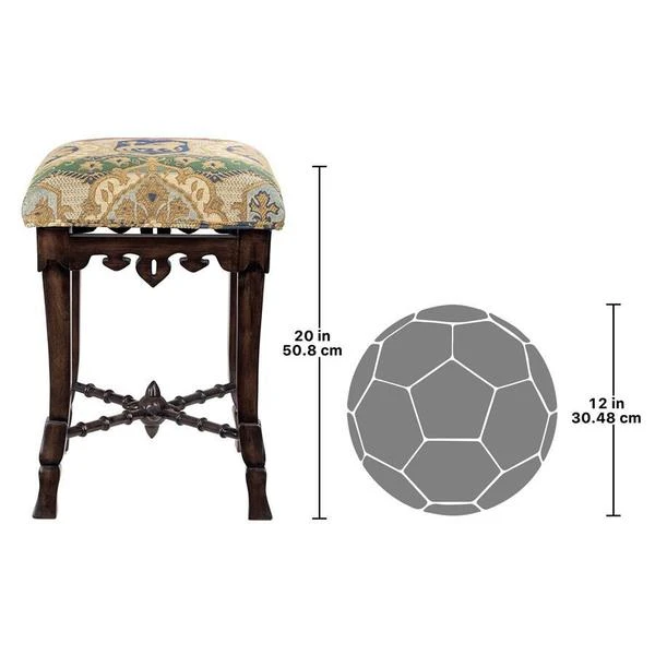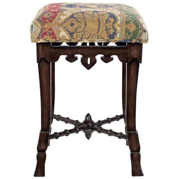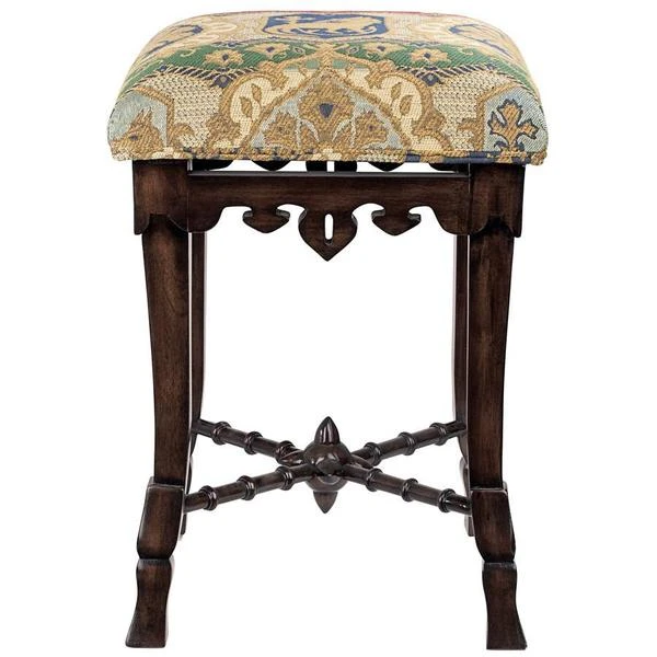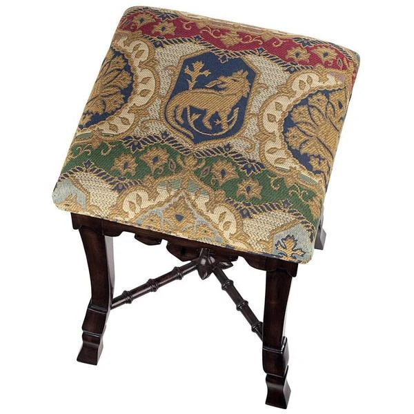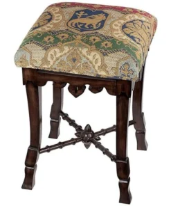 A most unique object forms the centerpiece of this antique replica – a medieval mace! Simultaneously simple and sophisticated, our versatile stool requires two days to handcarve the solid mahogany, before finishing it with an appropriate medieval jacquard upholstery. For use in most any room, this Toscano exclusive is a stunning addition to your other antiques and is sure to garner compliments. See additional views for upholstery color swatch. 14"Wx14"Dx20"H. 5 lbs.
