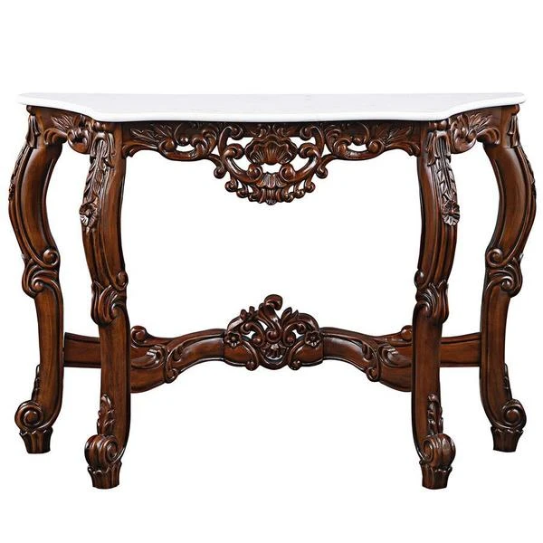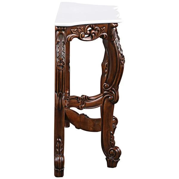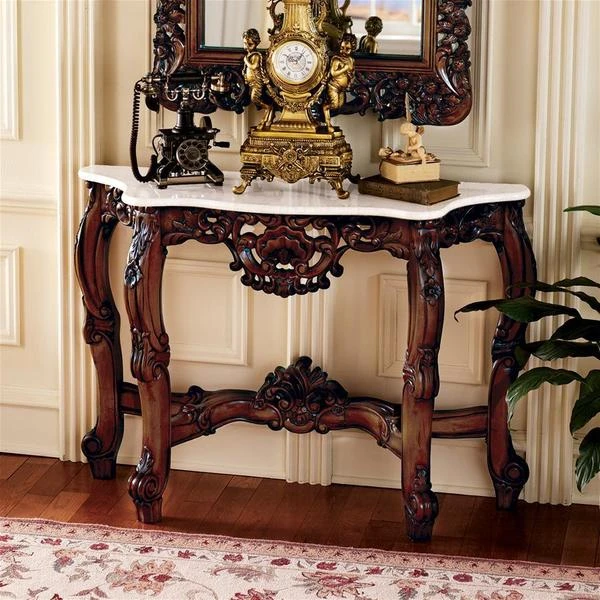 This elegant, solid hardwood work of furniture art is so fraught with intricate acanthus and foliate scrollwork that this console table requires more than a week of hand carving! Replicating those seen in grand Parisian salons, ours is hand-finished to resemble a true antique. Our Design Toscano-exclusive console rises on four ornate scroll legs toward a solid marble top with serpentine edge. Add a touch of history and style with this statement piece perfect for entryway foyer, library, or formal living room. Simple assembly required. Console Table: 47"Wx15"Dx34"H. 72 lbs.