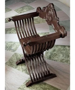 Our classic 15th-century scissor chair was named after the charismatic Dominican monk Girolamo Savonarola. Once, only the most wealthy could afford an exquisite, hand-carved chair with the scissor-like principle that allowed it to be folded and easily moved. Our exclusive historical replica is true to the original design, with 16 ribbed, serpentine, cross-strut legs, hand-cut from solid teak, and a bas-relief profile of Savonarola carved into the backrest. 21"Wx21"Dx37"H. 30 lbs.