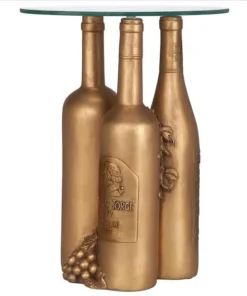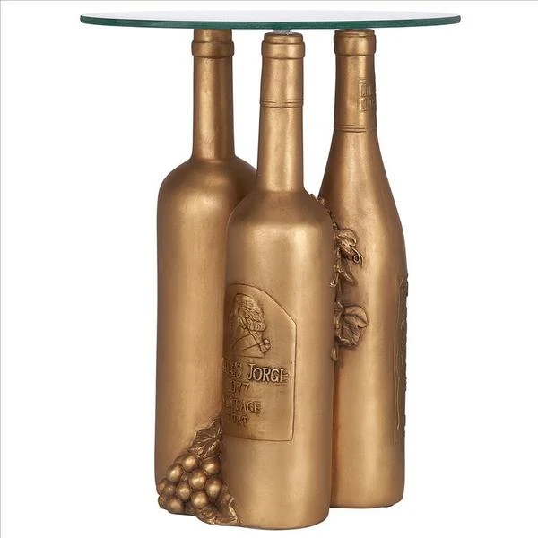 Each day's a celebration of good wine and good friends with this charmingly nostalgic table, literally set atop favorite vintages of the past! A trio of oversized wine bottles gathers with grapes and stemware to host your next tasting and to be showcased to full advantage beneath a 16"-diameter, 3/8"-thick glass top. Cast in quality designer resin, our Design Toscano exclusive table is finished in faux bronze to bring out each vintage detail. 16"dia.x211⁄2"H. 16 lbs.