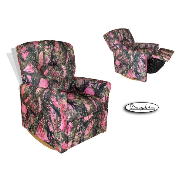 This Contemporary Pink Camouflage Child Rocker Recliner Chair in True Timber Fabric will make a statement in any living room. This recliner is perfectly suited for the perfect child. Our high-quality recliner comes in kid-durable Pink Camouflage Denim which makes cleaning up crumbled cookie crumbs a snap. Don't conceal your love from that special child. Bring home the Pink Camouflage Rocker Recliner today. Add a little rock to your little one's favorite afternoon show!Exclusive safety design keeps rocker from rocking or tipping over while in the reclined position!Dimensions are 28" H x 25" D x 23" W.Seat Height is 14" width 14" and depth 15".Recommended for children ages 2 to 9.