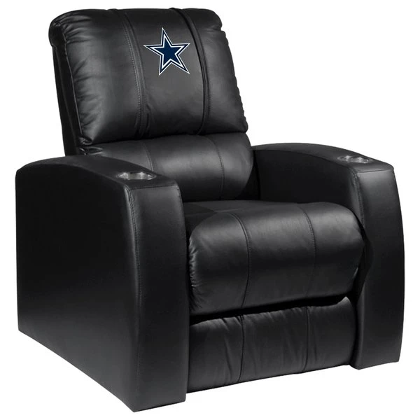 Perfect for your man cave, home theater, or anywhere you want to recline and relax in total comfort. Combines contemporary design with the ultimate in comfort, provided by a fully reclining frame with lumbar and full leg support. It features synthetic leather and a manual recline mechanism. Wall-A-Way Recline: fully recline only inches from the wall with full chaise support that provides continuous head and neck support. The patented XZipit system provides endless logo options on the front of the chair and allows you to showcase your favorite team or interest.<ul><li>Xzipit patented Interchangeable Logo System</li><li>High Quality Synthetic Leather</li><li>Wall-A-Way Recline: Fully Reclines Inches From Wall</li><li>Chaise Support: Continuous Heaf To Toe Support</li><li>2 Stainless Steel Cup Holders</li><li>Removable Back For Quick Delivery & Moving</li><li>Limited Lifetime Warranty on Frame</li></ul><p>Overall Dimension: 36.5"W x 37"D x 46"H</p>