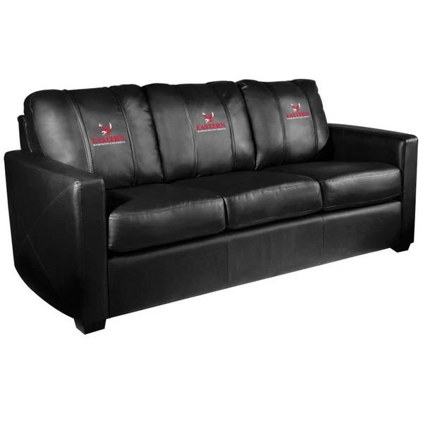 This Sofa is a perfect choice for looks, comfort and versatility. Designed to be used in any setting this couch will match any living room, den or man cave decor. Featuring high quality synthetic leather with a hardwood frame, this sofa is constructed with no-sag spring suspension and high resiliency foam, truly a piece that will stand the test of time. Pair this couch with the matching club chair and loveseat to create the ultimate fan cave. The patented XZipit system provides endless logo options on the front of the sofa and allows you to showcase your favorite team or interest. Sofa ships with one center logo, additional logos can be order separately.<ul><li>Xzipit patented Interchangeable Logo System</li><li>Faux Leather, PVC</li><li>Crescent Style Arms and Criss Cross Stitch Design</li><li>No-Sag Spring Suspension and High resiliency Foam</li><li>Limited Lifetime Warranty</li></ul><p>Overall Dimensions: 77"W x 37"D x 36"H</p>