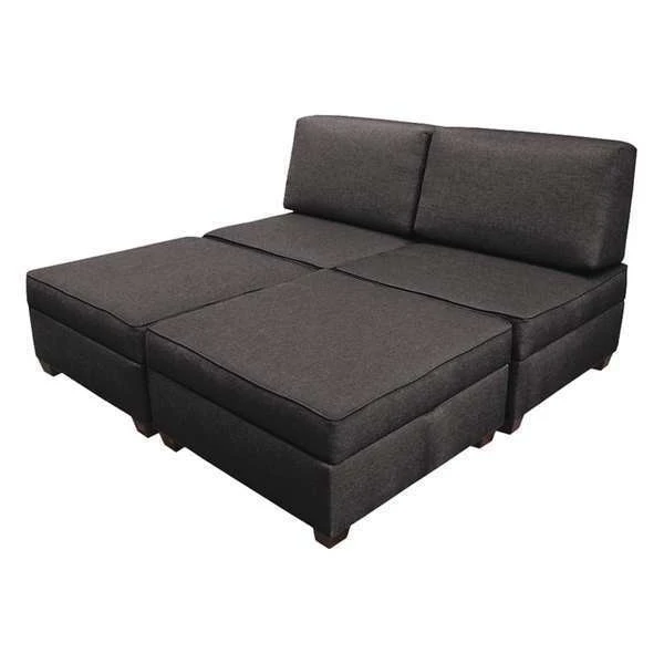 The Duobed King SofaBed includes (4) Ottomans (2) Sofa Back Pillows and (2) Back supports. Easily arrange the pieces as a king-size bed, twin beds, sofas, chairs or chaise lounges so you can sit by day, sleep by night. That's more furniture for less money. The ottoman top opens to reveal convenient storage space. Perfect for dorms, studio apartments, kids rooms, dens, and offices. With comfort and versatility, the possibilities are endless <ul><li>100% Polyester Fabric – Clean with water or carpet cleaner</li><li>Firm cushions made of 1.8 density foam offers superior comfort and makes it lightweight and easy to move</li><li>Connect to other pieces from this manufacturer to make chairs, sofas, beds, sectionals, and more</li></ul>